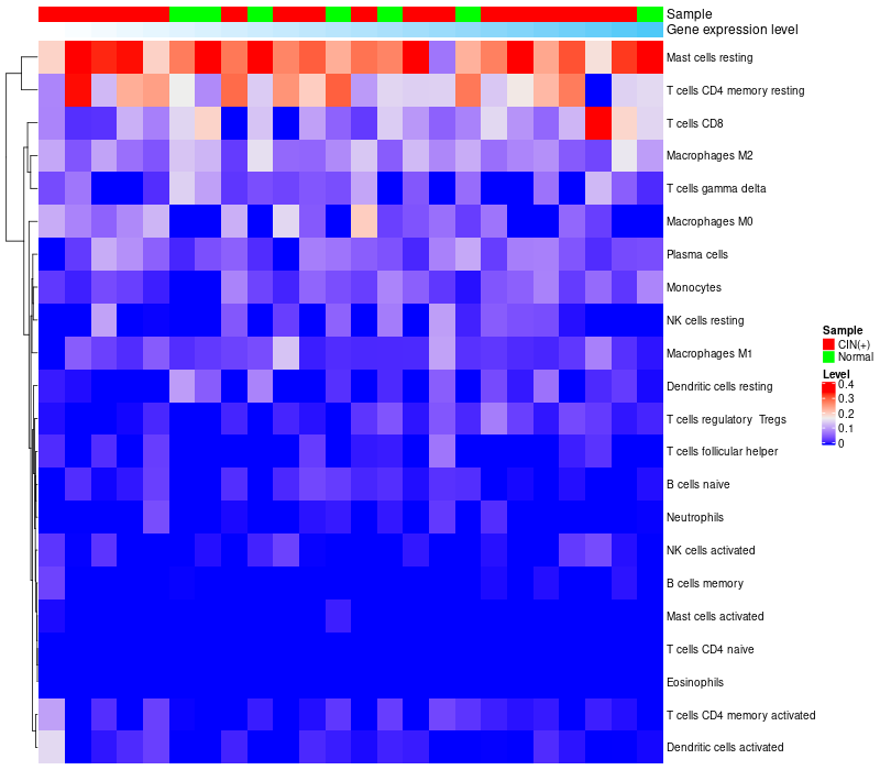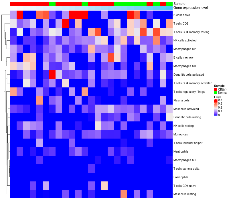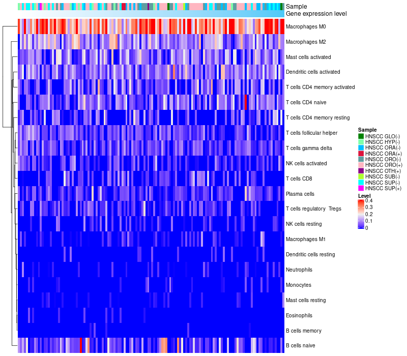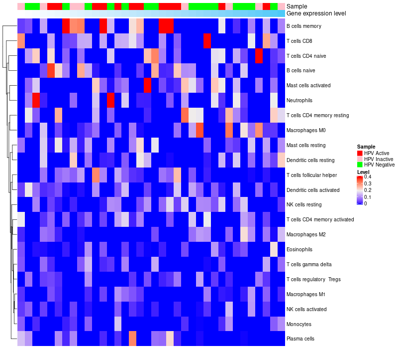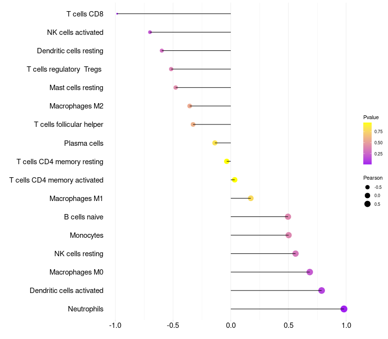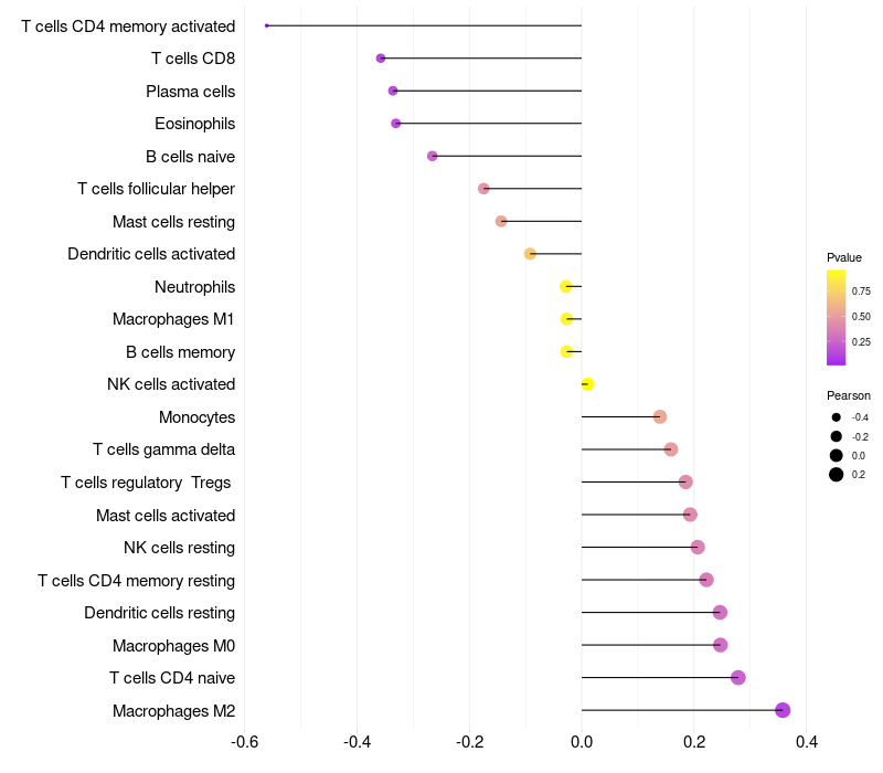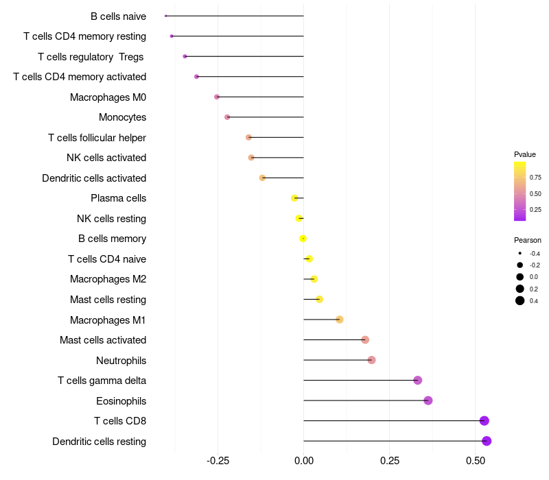Lollipop of YIPF5 expression and immune infiltrating cell level correlation result in HPV+ samples