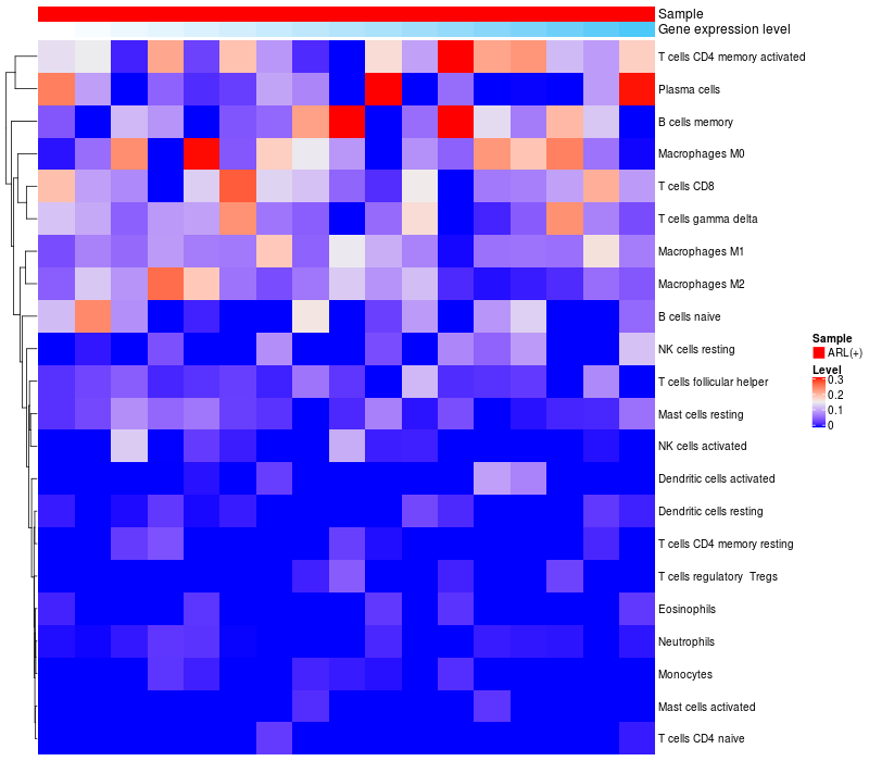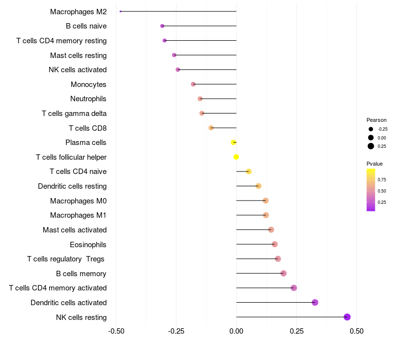 Relationship between gene expression and immune infiltrating cell level