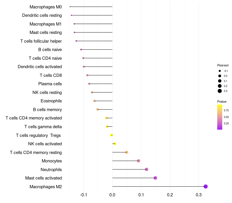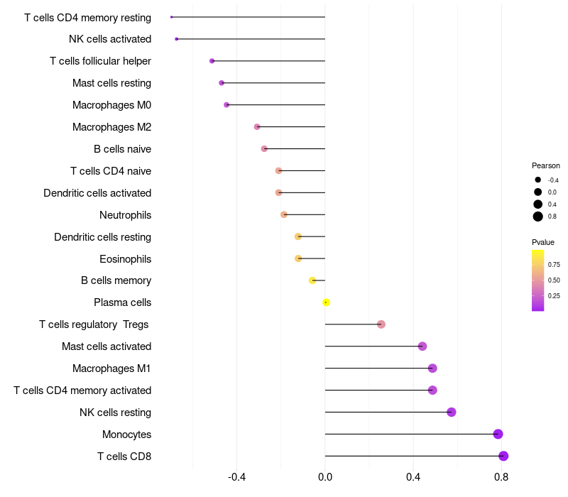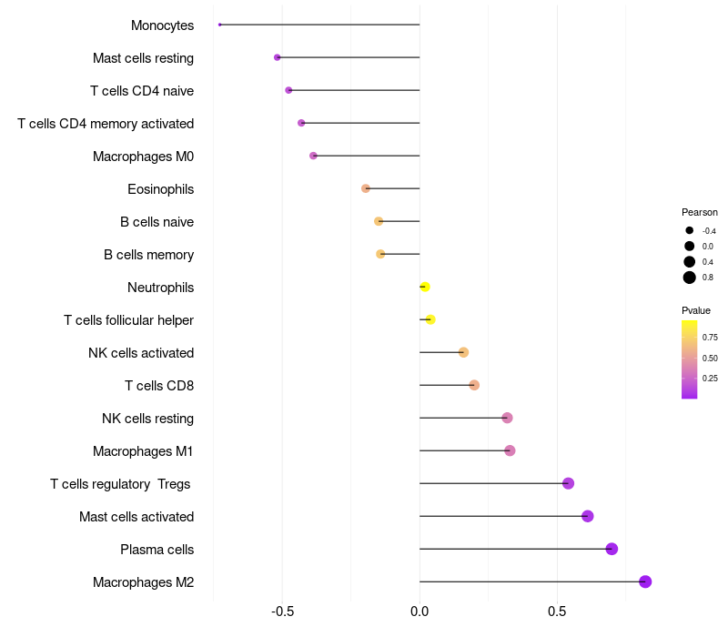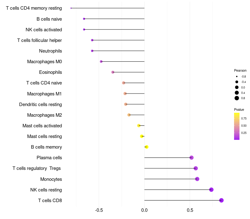 Lollipop of ZAN expression and immune infiltrating cell level correlation result in HBV+ Liver cirrhosis samples