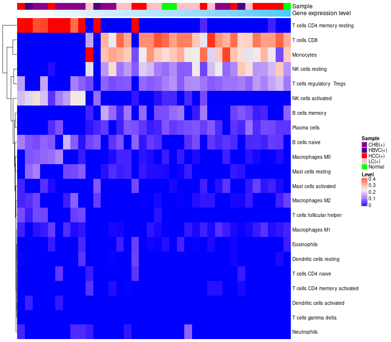 Lollipop of ZAN expression and immune infiltrating cell level correlation result in HBV+ Hepatocellular carcinoma samples