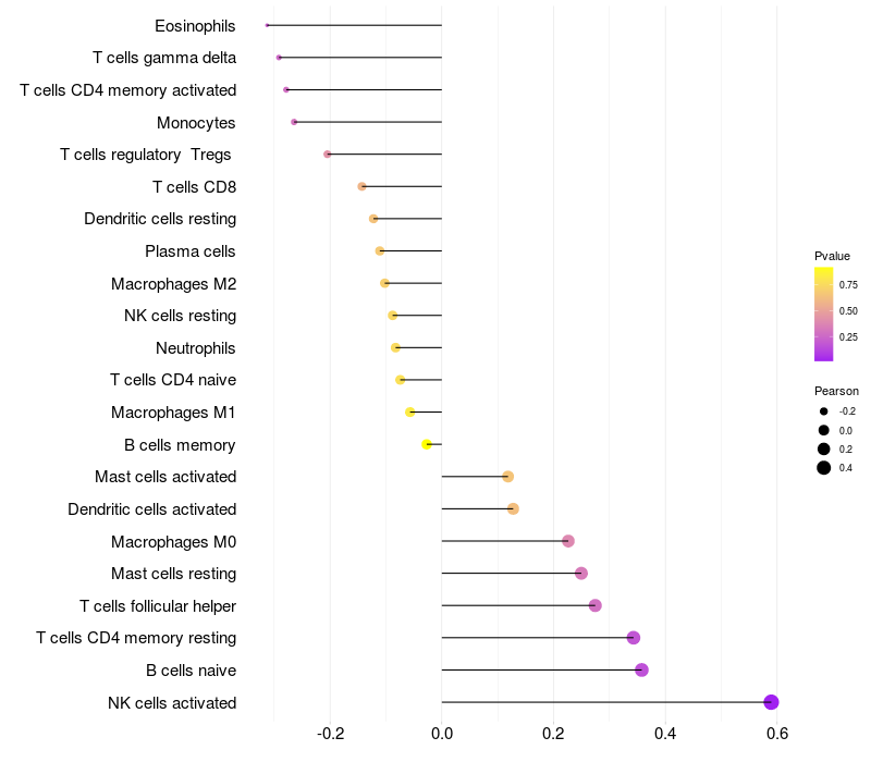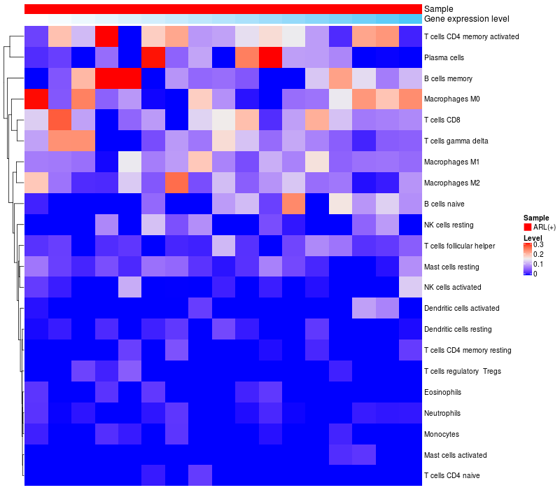 Relationship between gene expression and immune infiltrating cell level