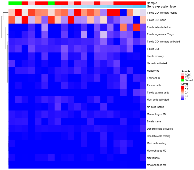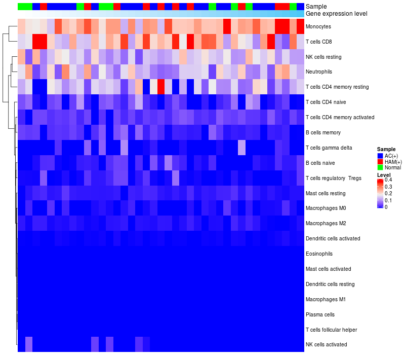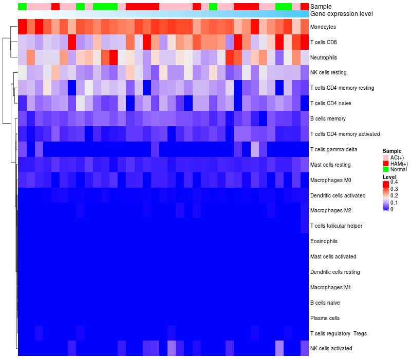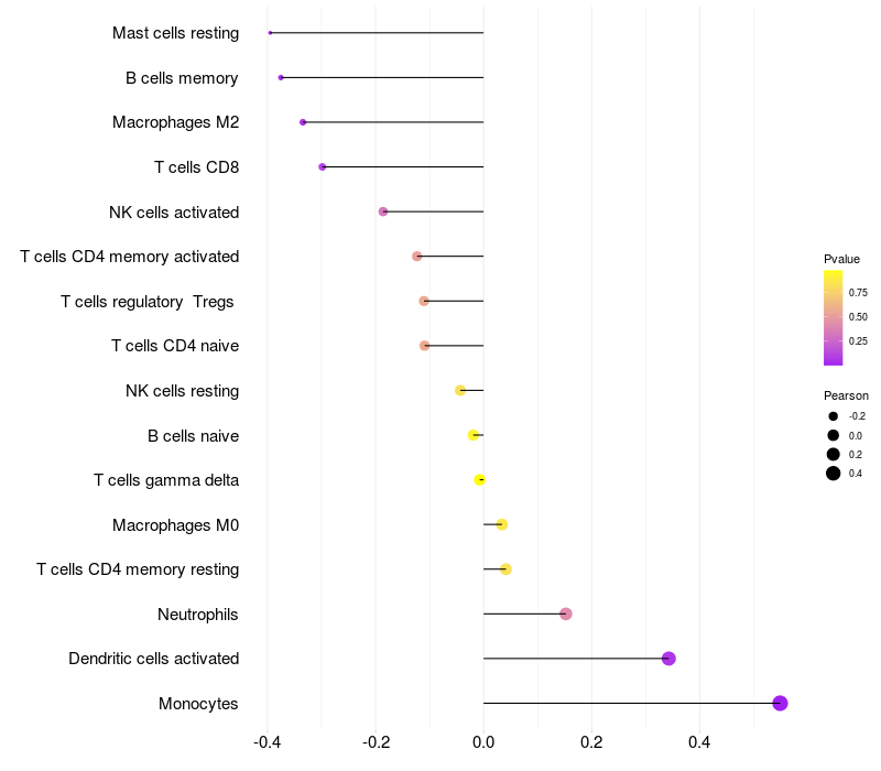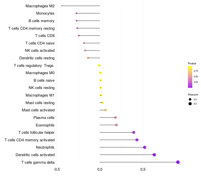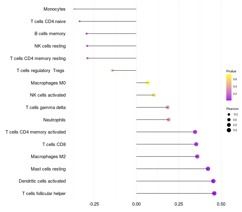 Relationship between gene expression and immune infiltrating cell level