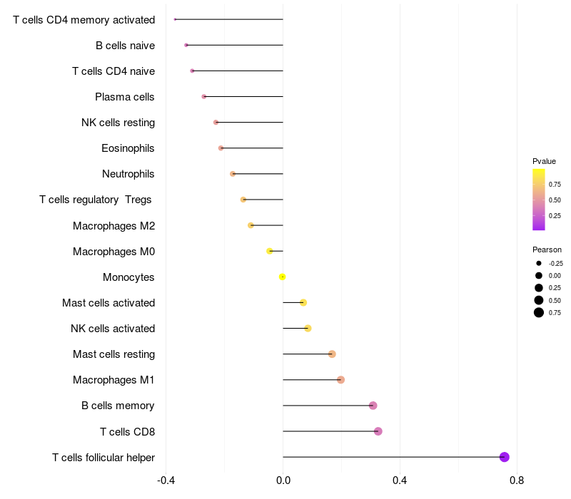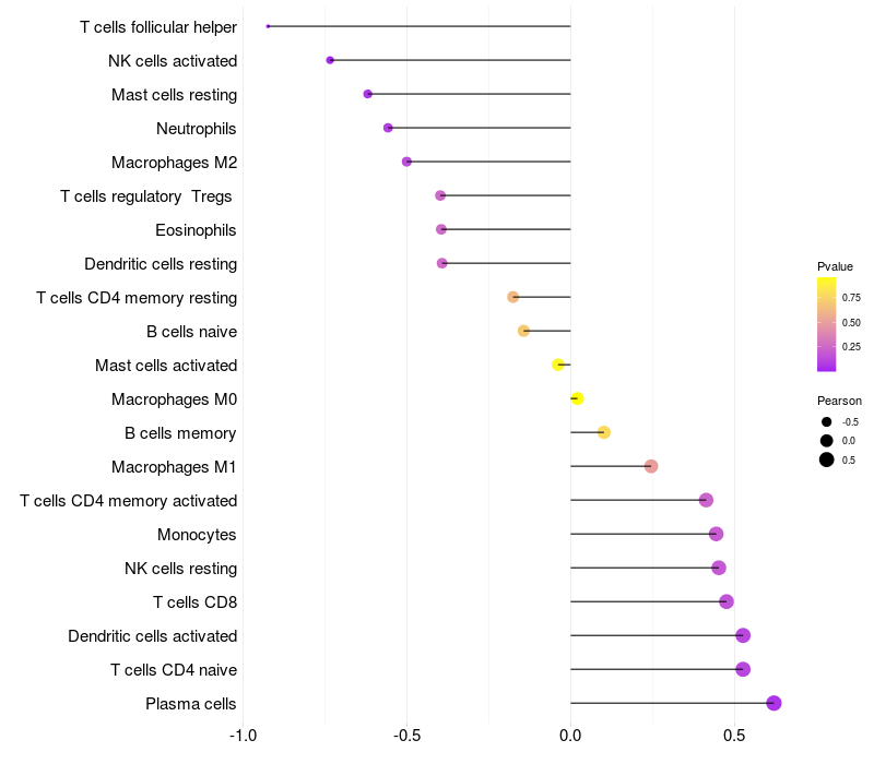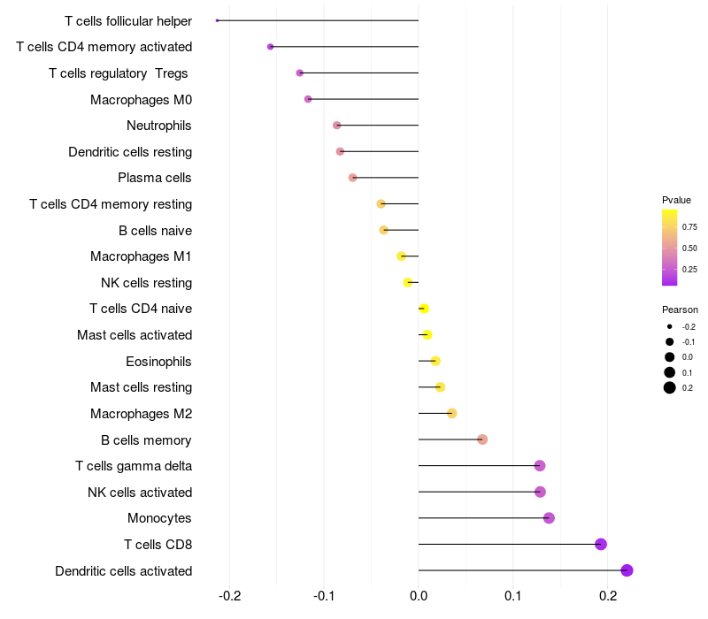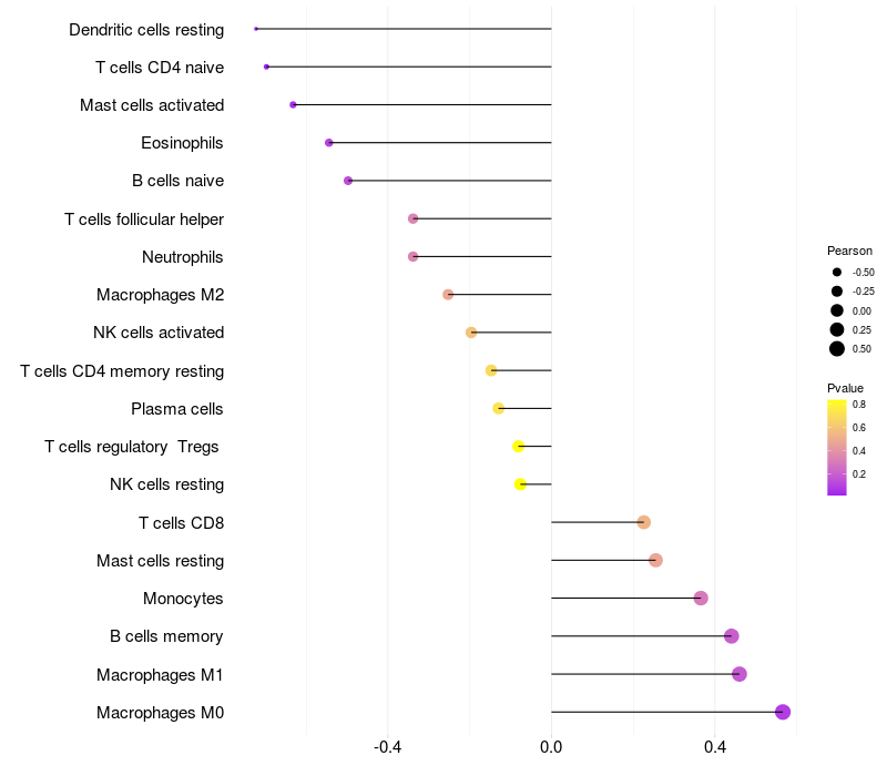 Lollipop of ZBTB20 expression and immune infiltrating cell level correlation result in HBV+ Liver cirrhosis samples