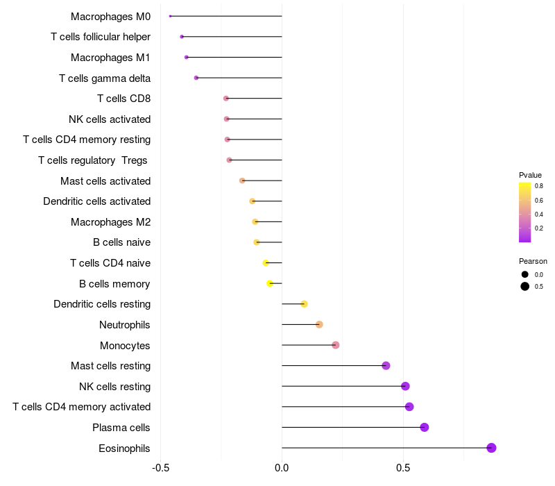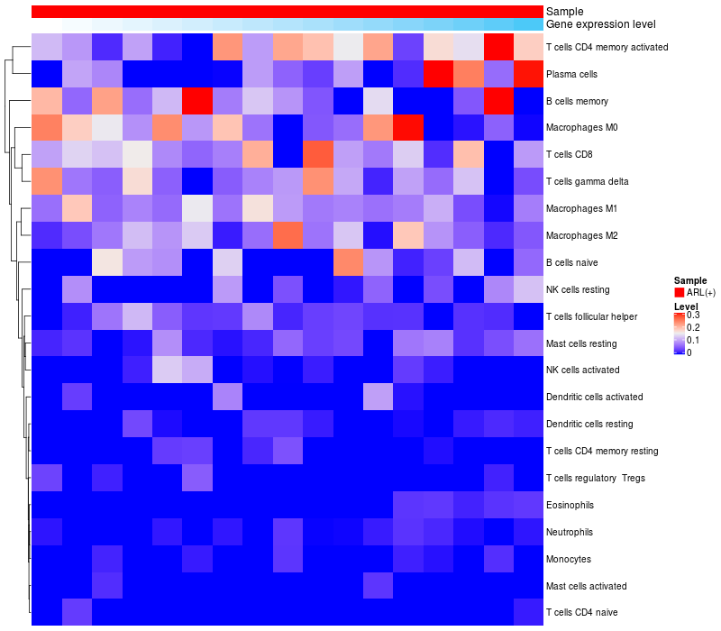 Relationship between gene expression and immune infiltrating cell level