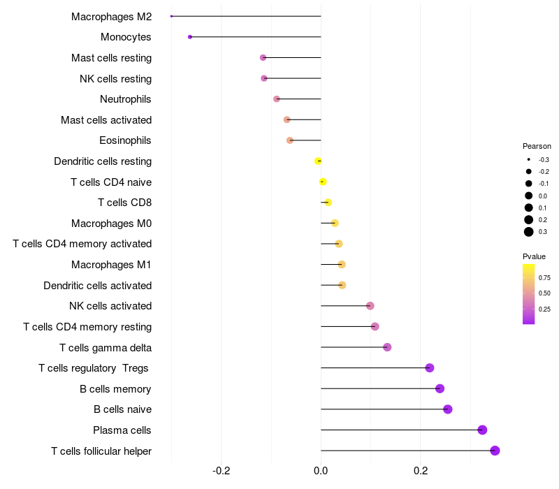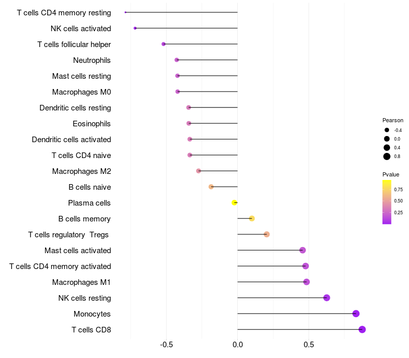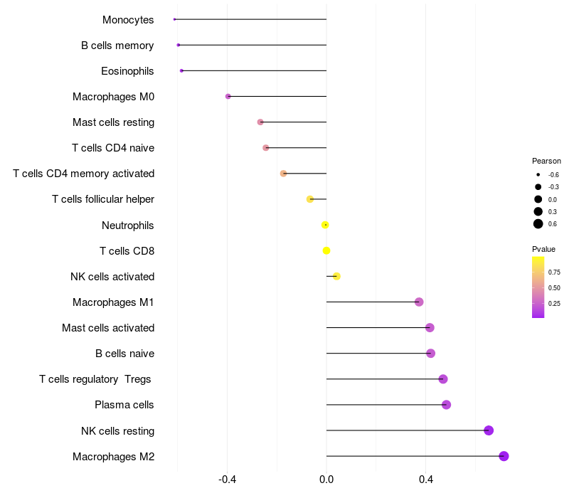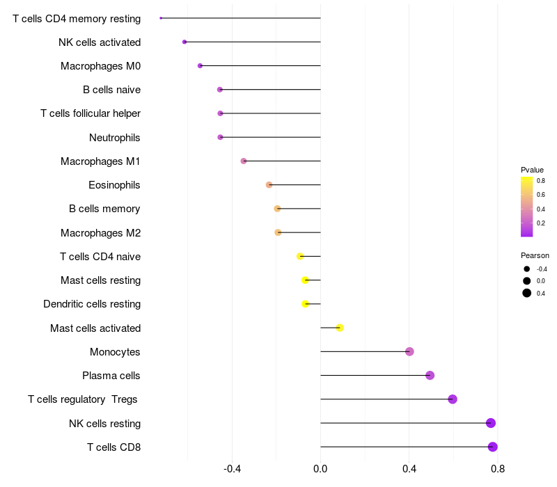 Lollipop of ZBTB32 expression and immune infiltrating cell level correlation result in HBV+ Liver cirrhosis samples