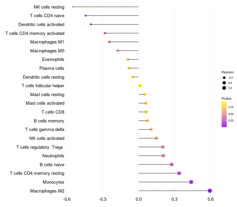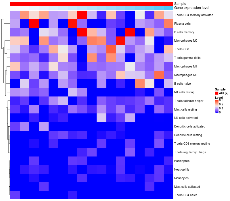 Relationship between gene expression and immune infiltrating cell level