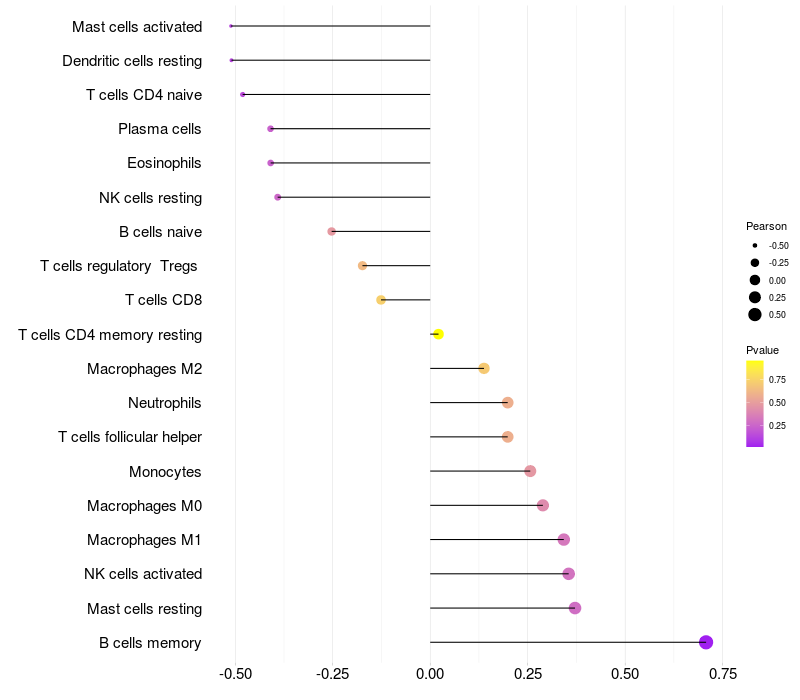 Lollipop of ZC3H11A expression and immune infiltrating cell level correlation result in HBV+ Liver cirrhosis samples