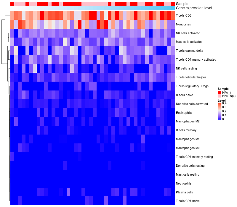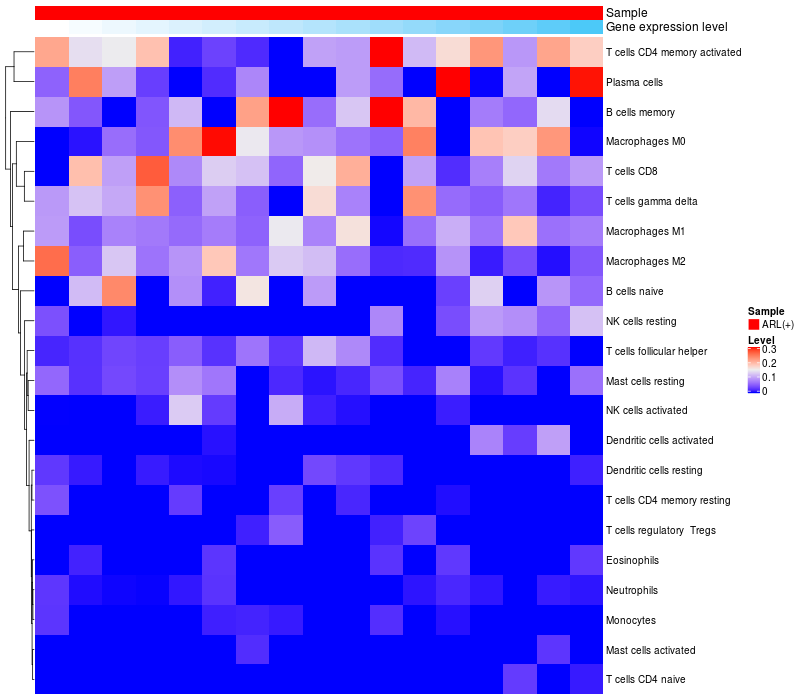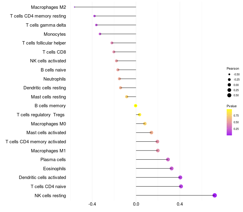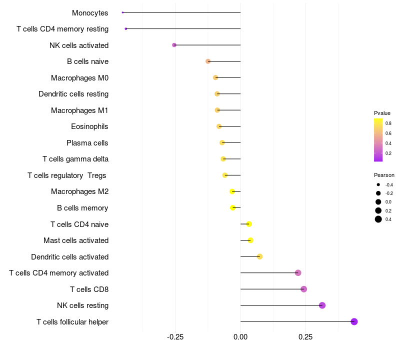 Relationship between gene expression and immune infiltrating cell level