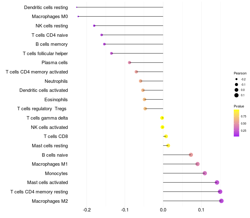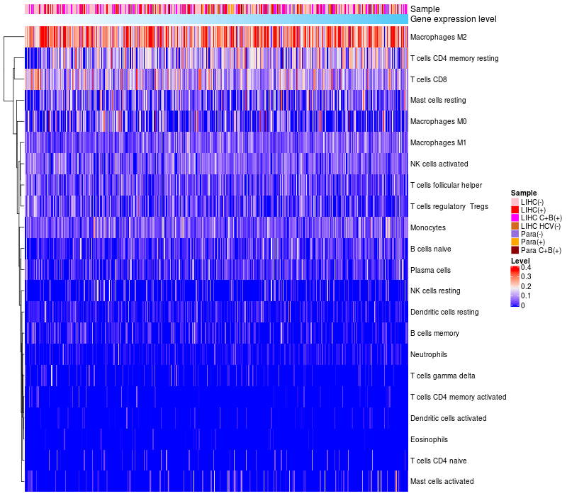 Relationship between gene expression and immune infiltrating cell level