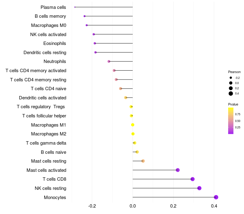 Relationship between gene expression and immune infiltrating cell level