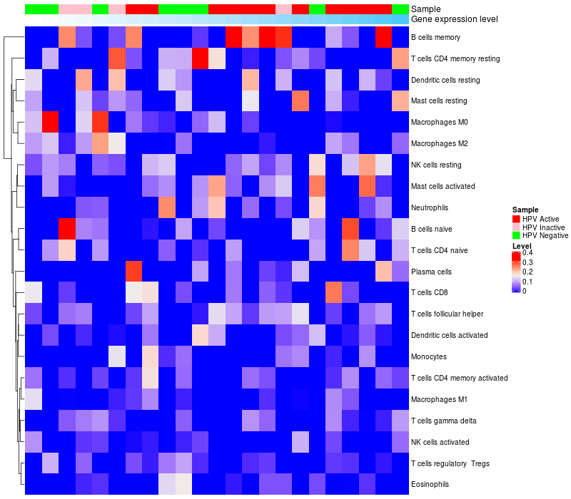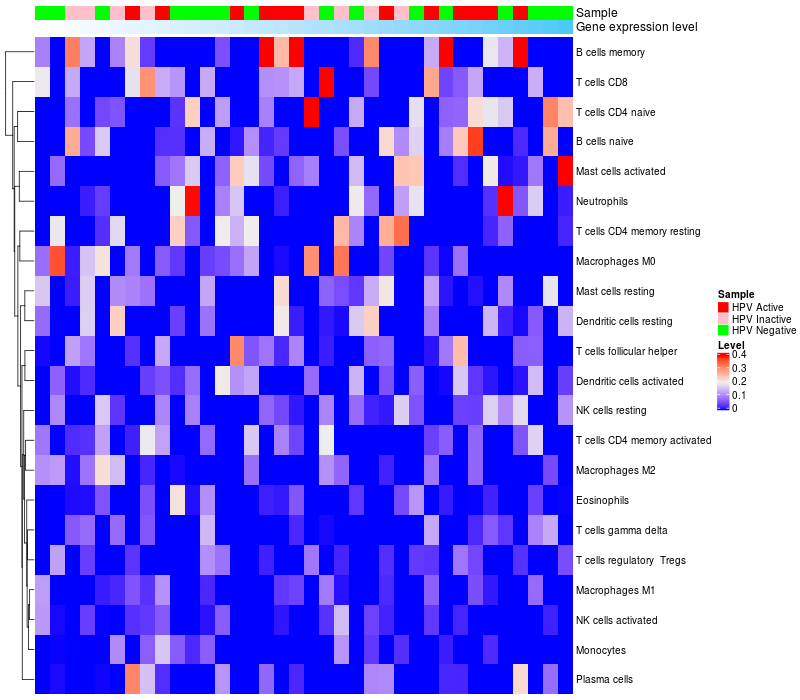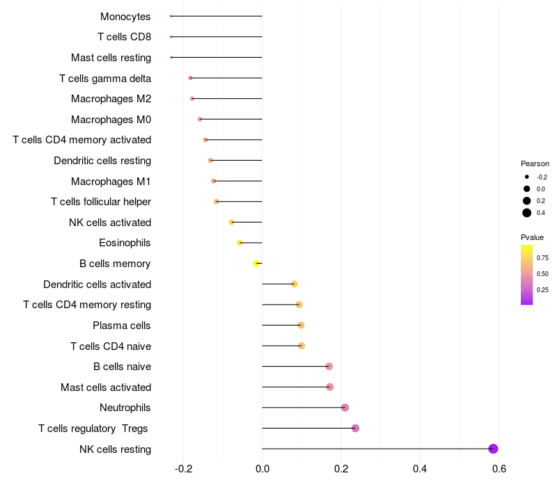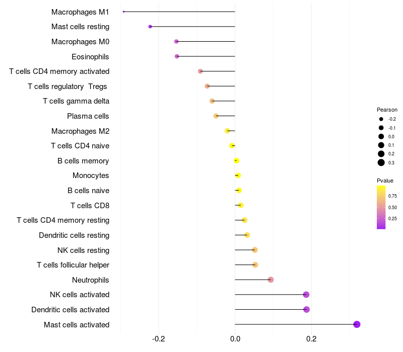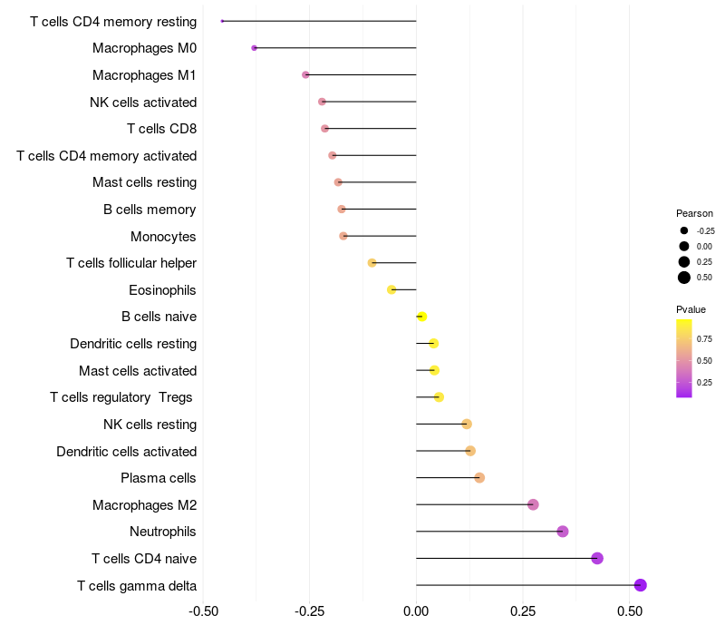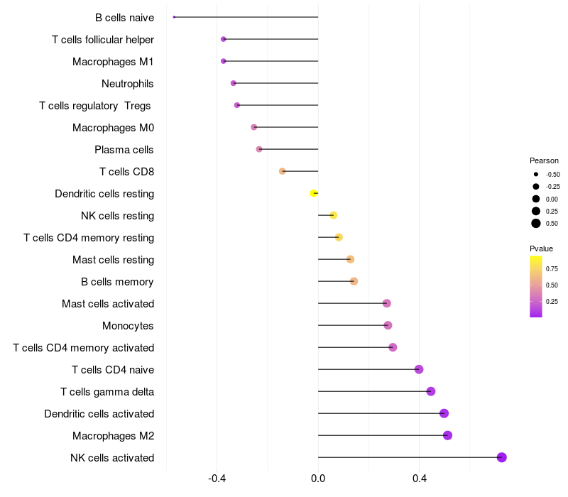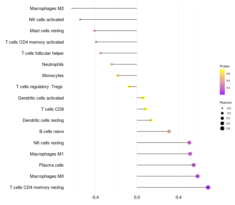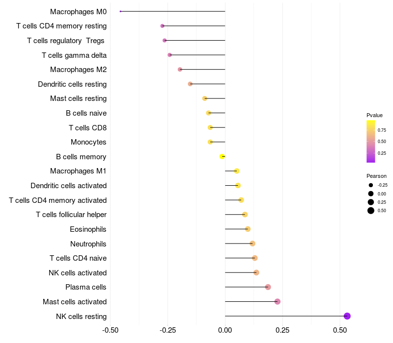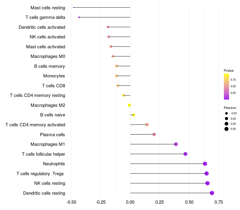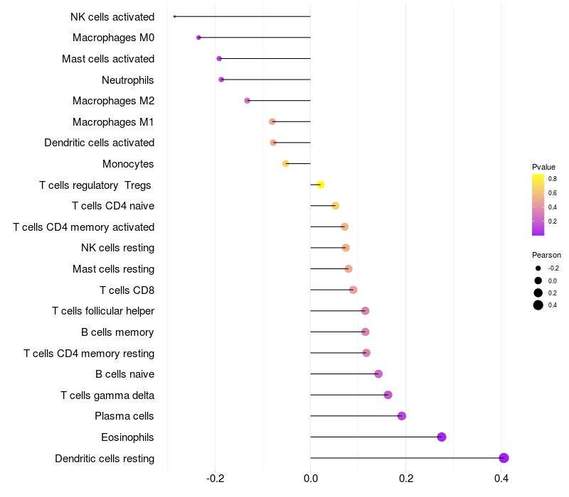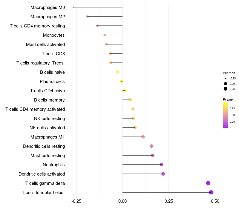 Lollipop of ZDHHC13 expression and immune infiltrating cell level correlation result in HPV+ samples