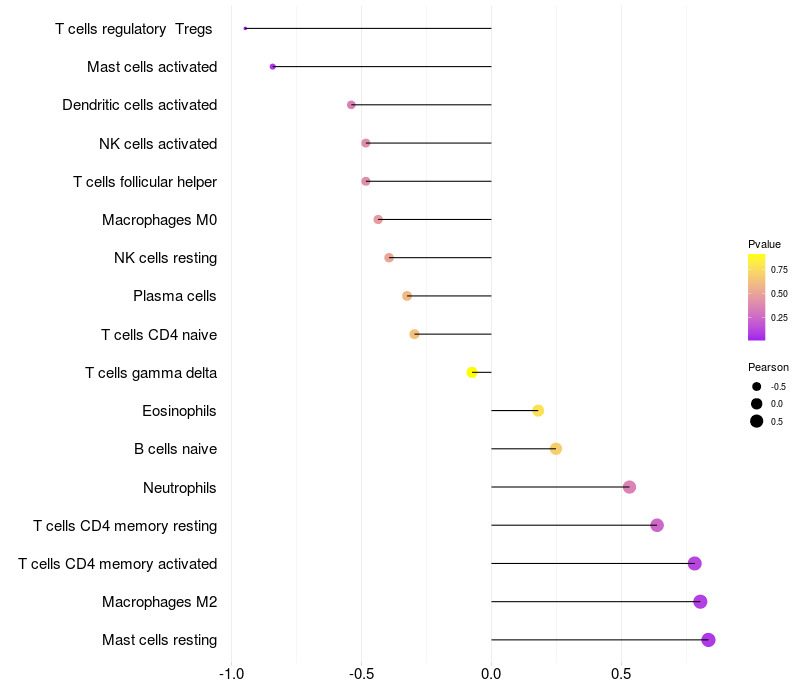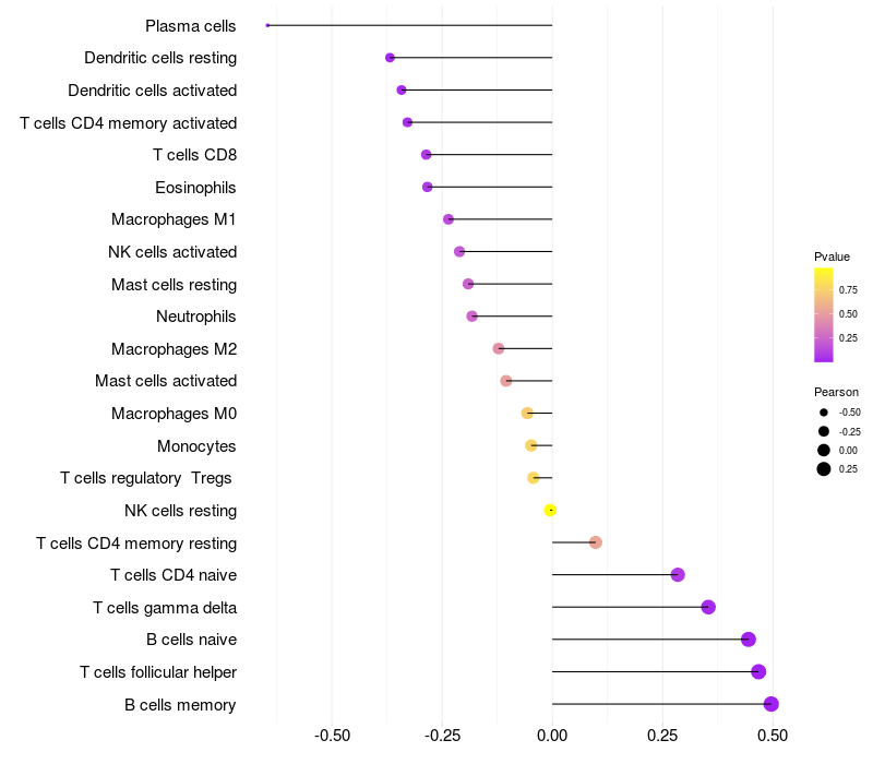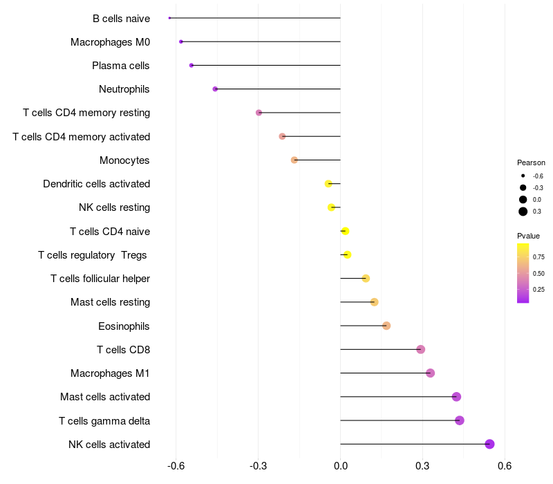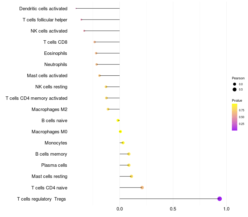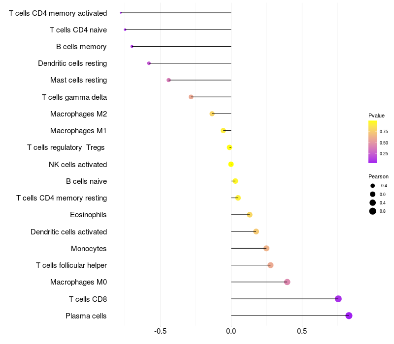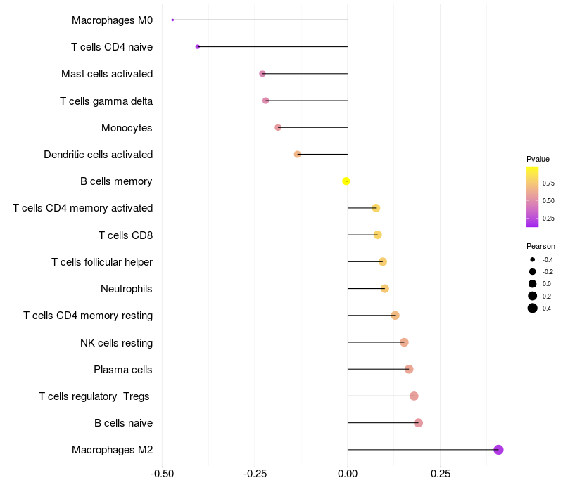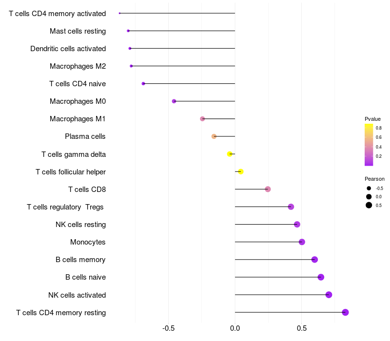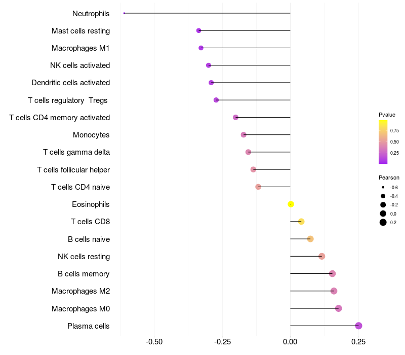 Lollipop of ZDHHC14 expression and immune infiltrating cell level correlation result in EBV+ samples