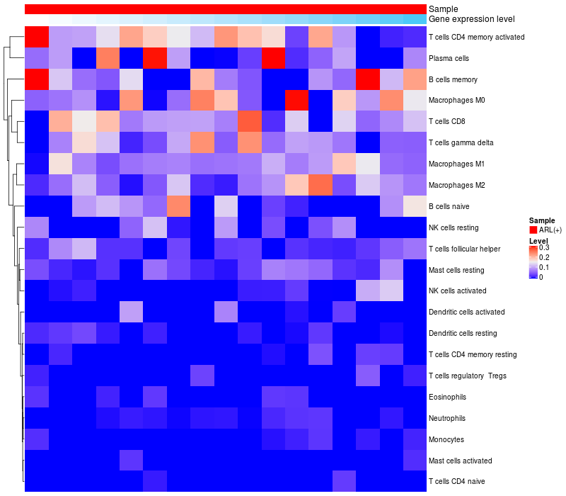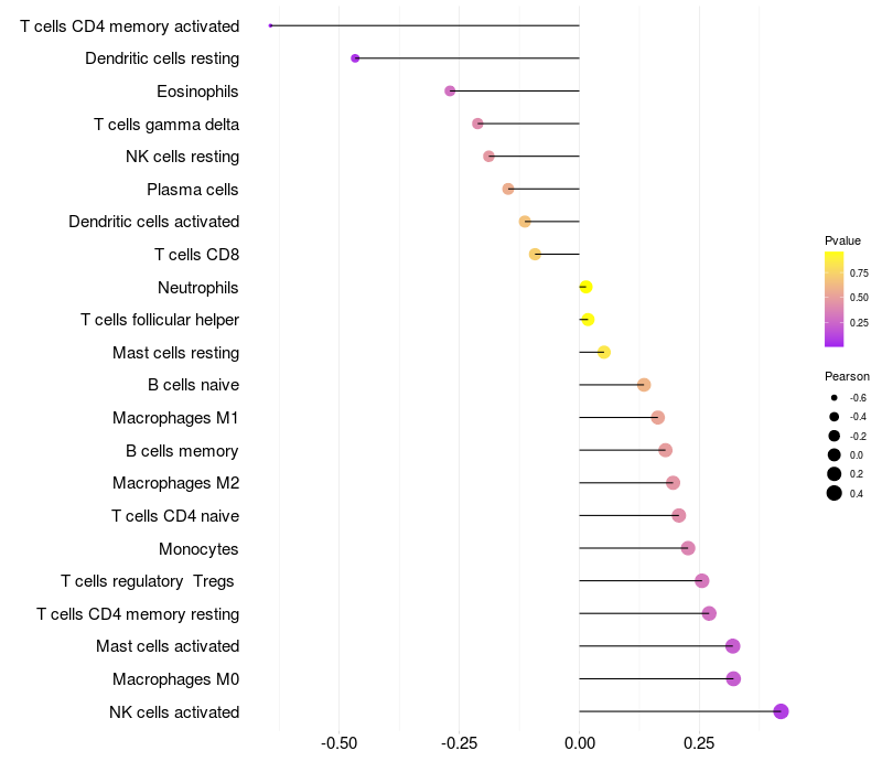Relationship between gene expression and immune infiltrating cell level