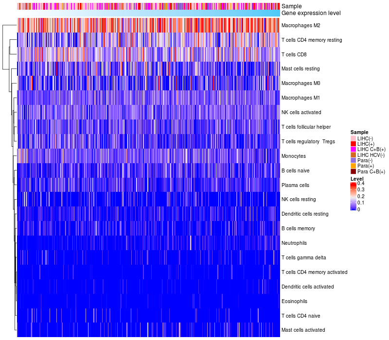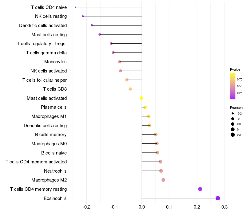 Relationship between gene expression and immune infiltrating cell level
