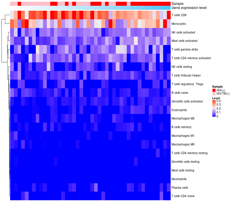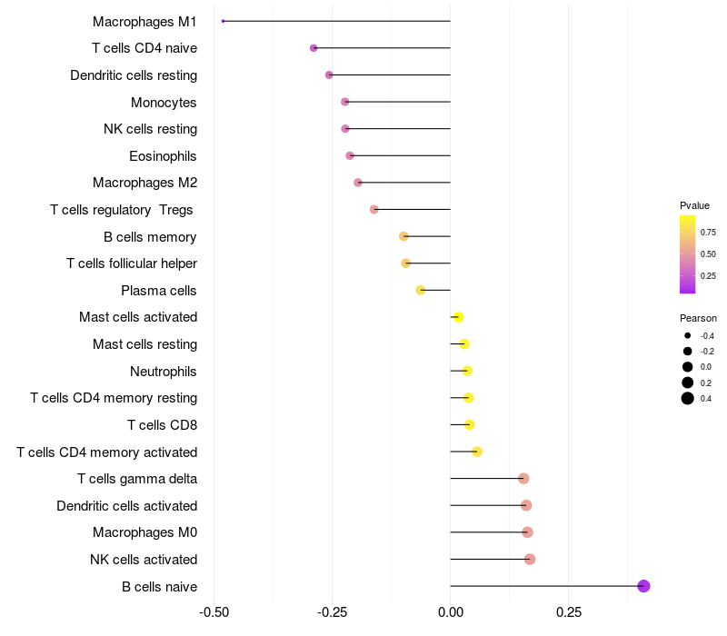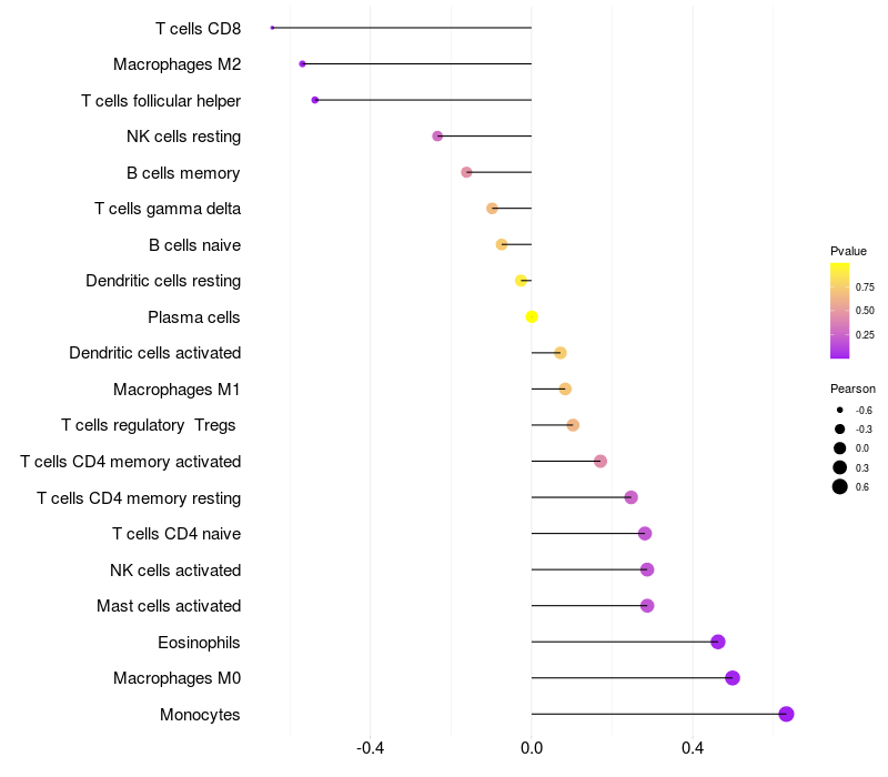 Relationship between gene expression and immune infiltrating cell level