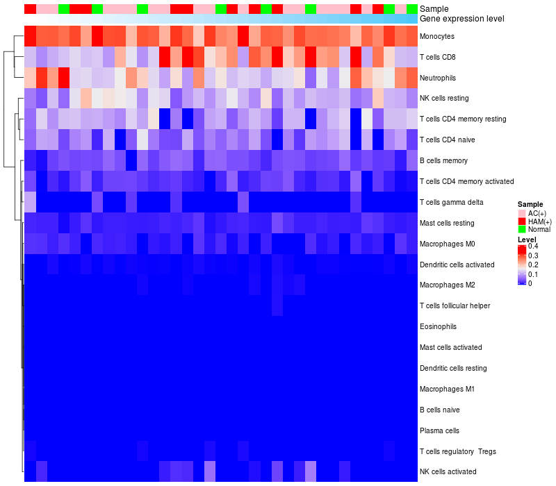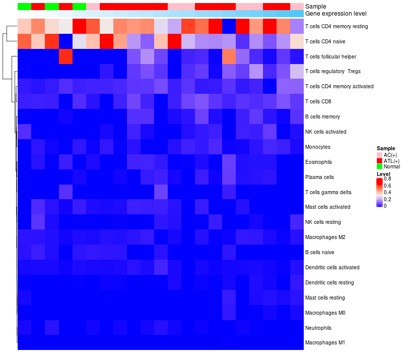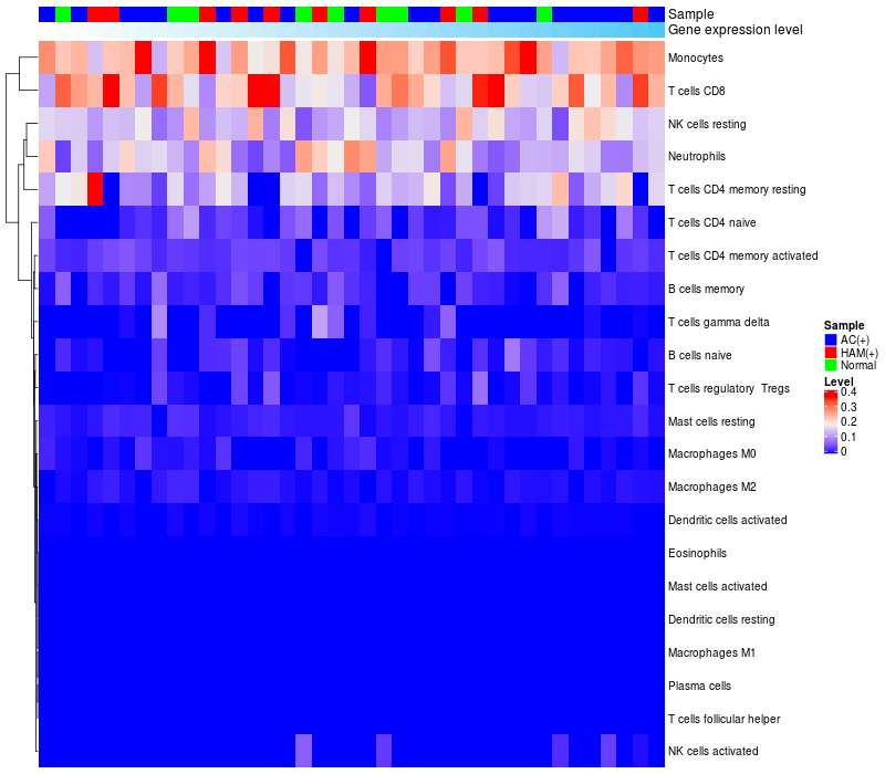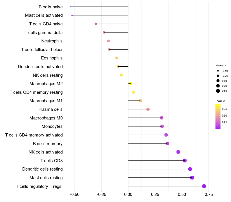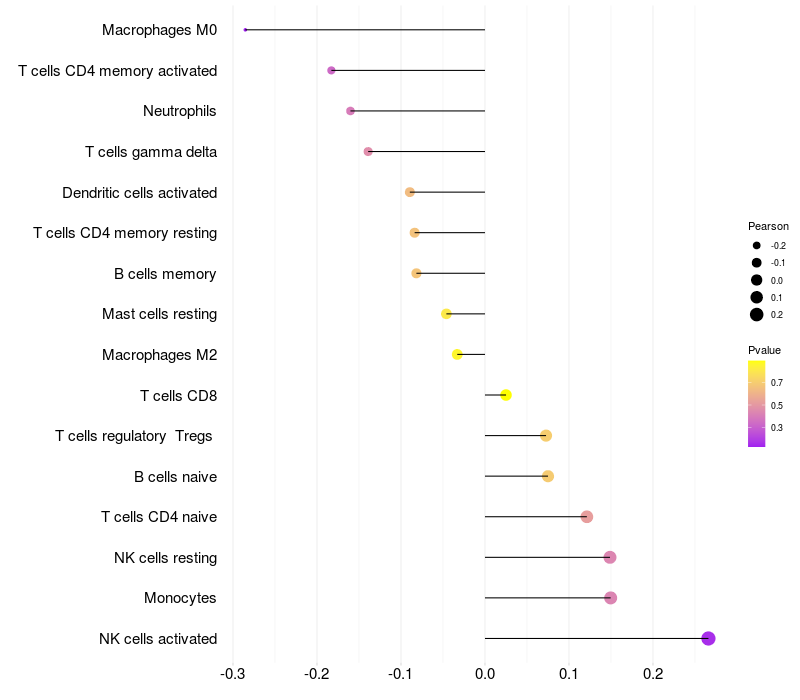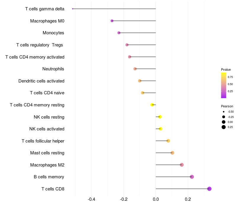 Lollipop of ZFP64 expression and immune infiltrating cell level correlation result in HTLV1+ samples
