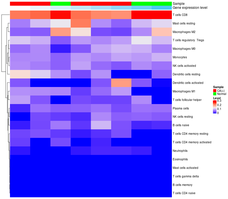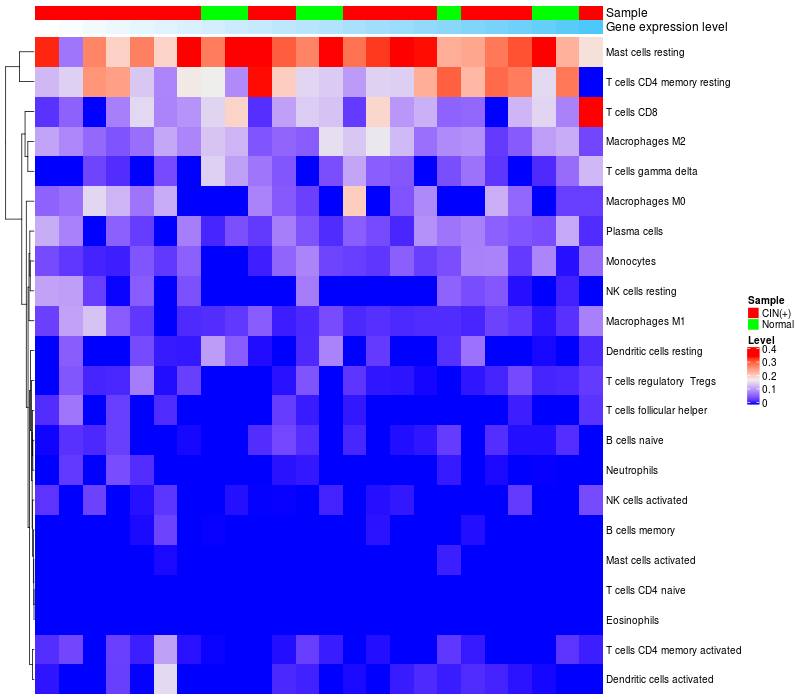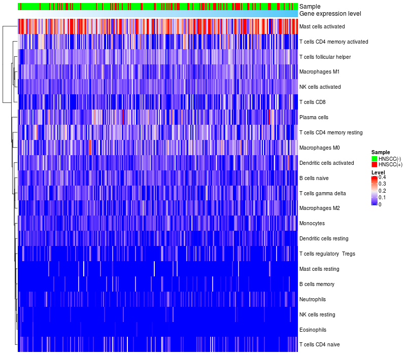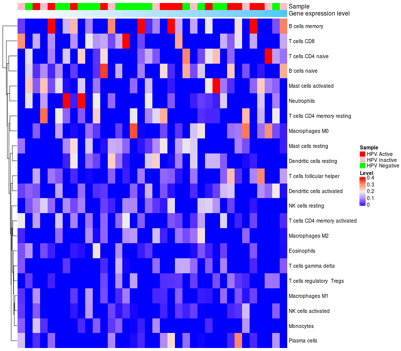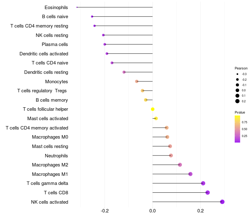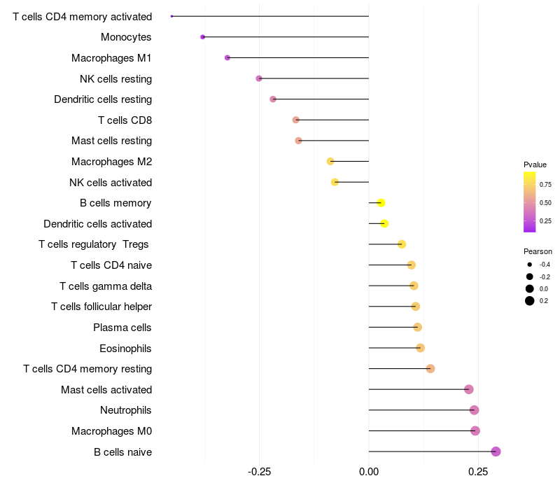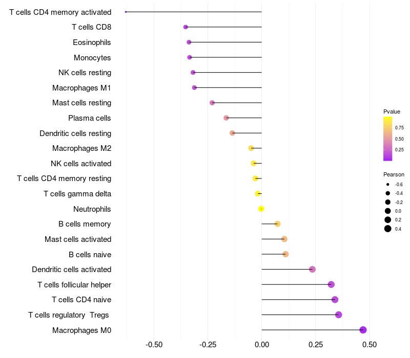 Lollipop of ZKSCAN2 expression and immune infiltrating cell level correlation result in HPV+ samples