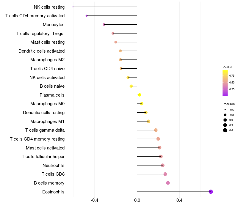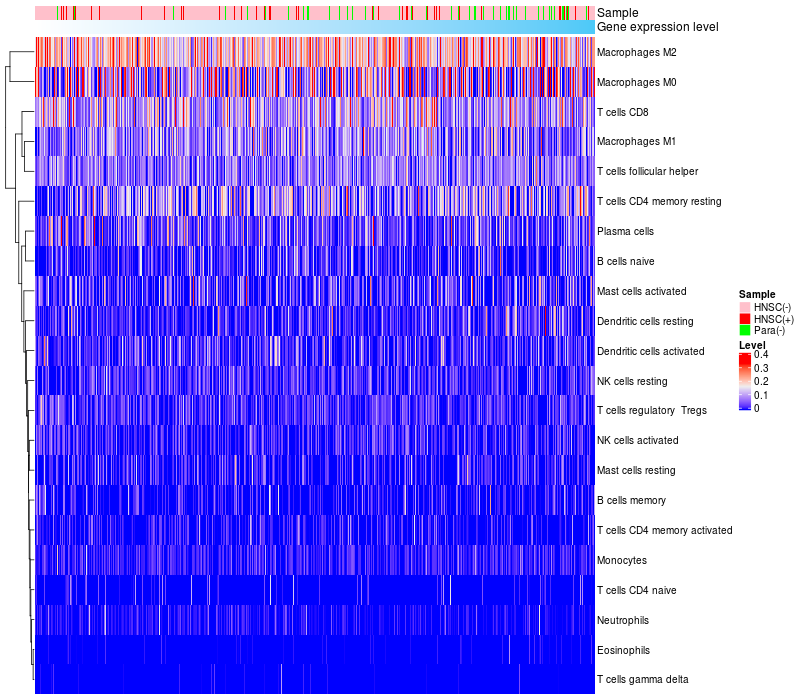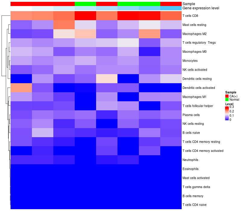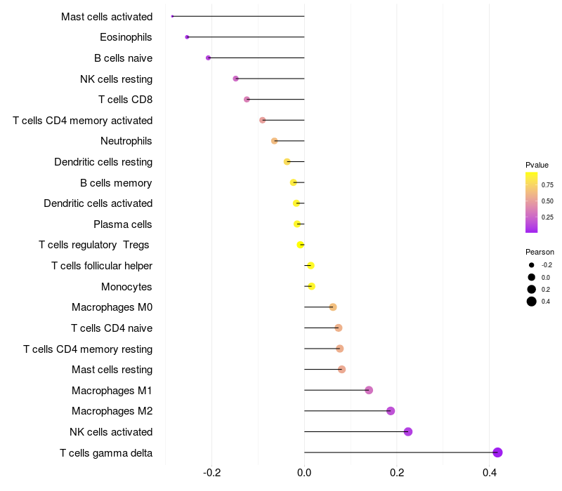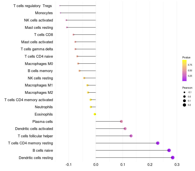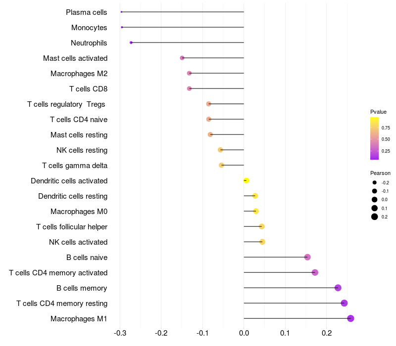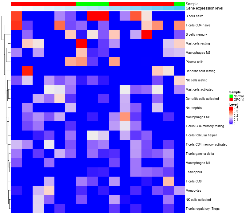 Relationship between gene expression and immune infiltrating cell level