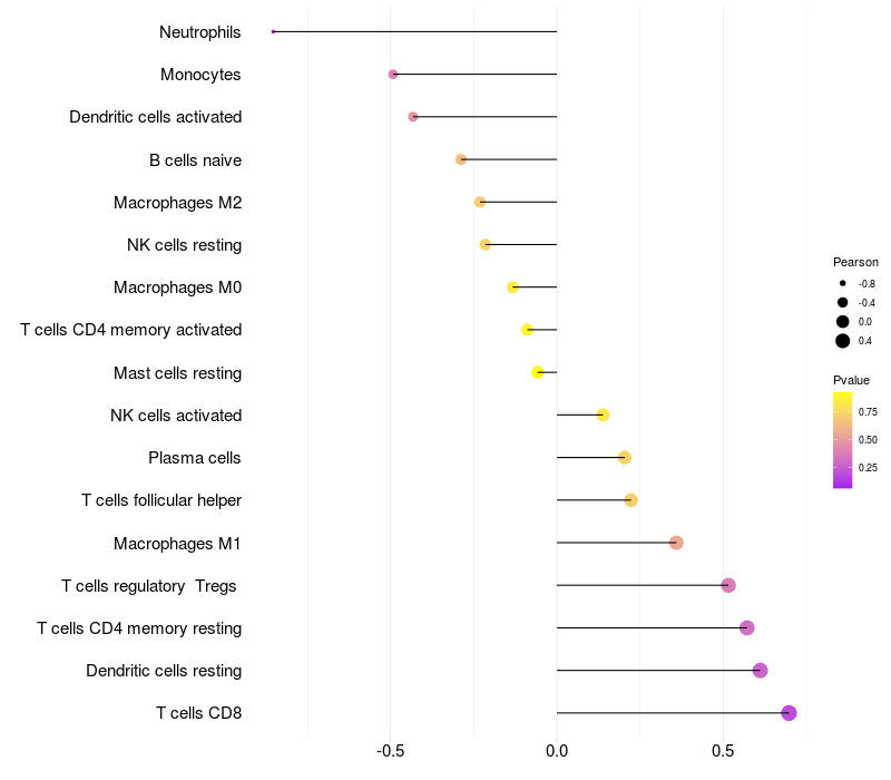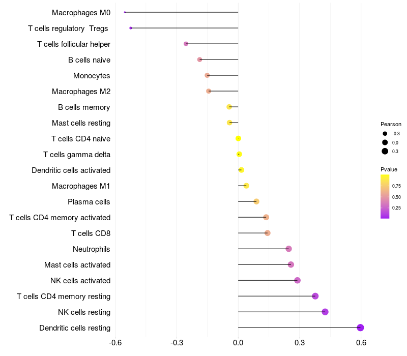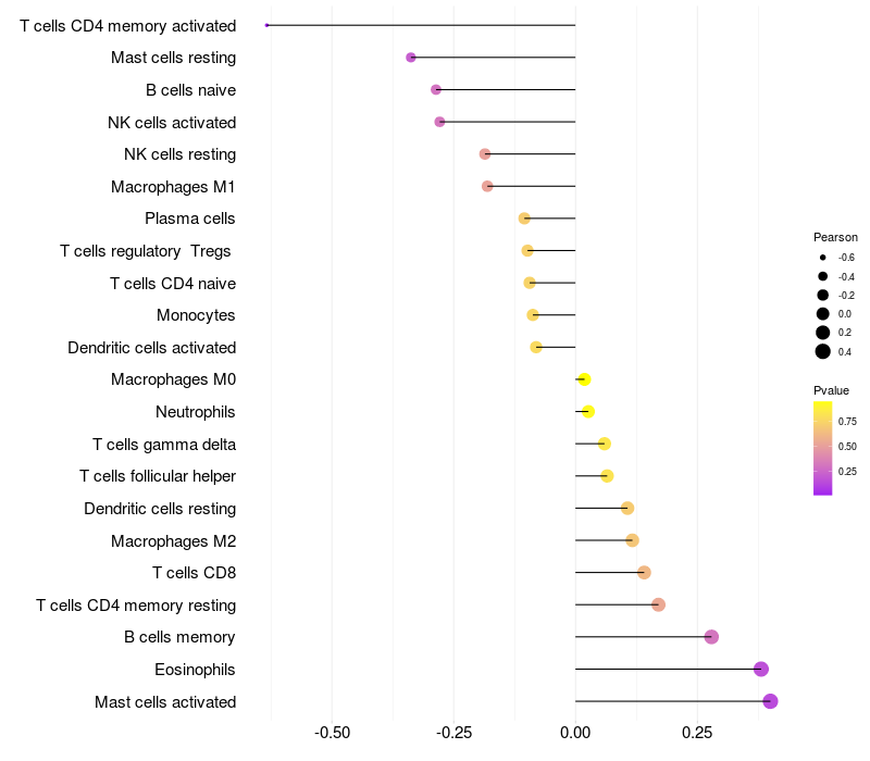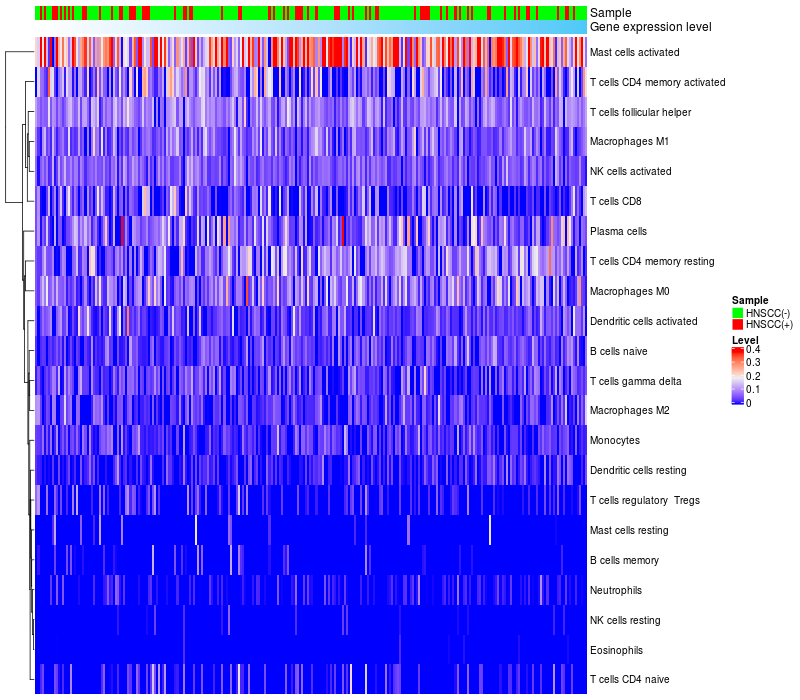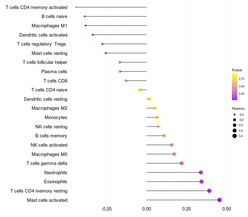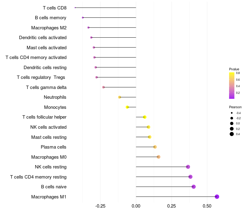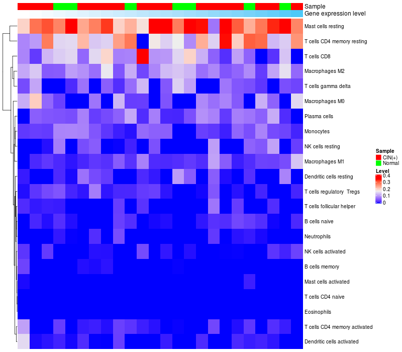 Relationship between gene expression and immune infiltrating cell level