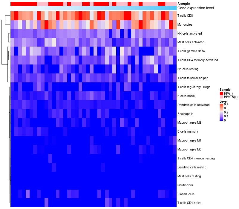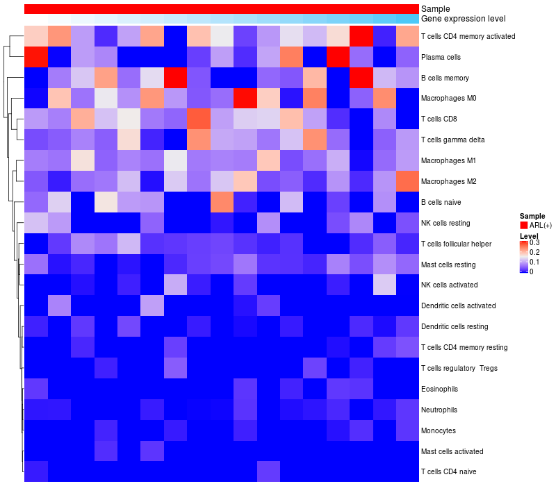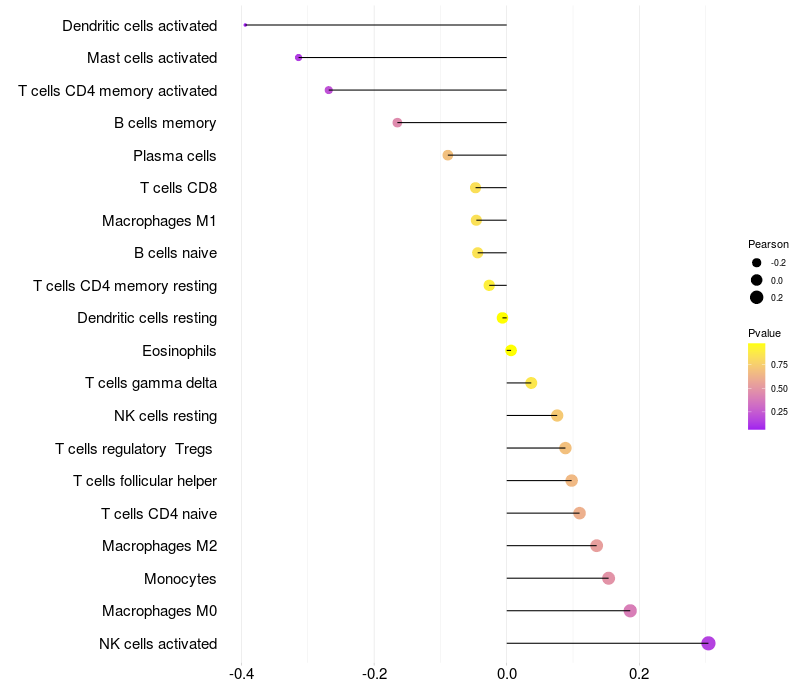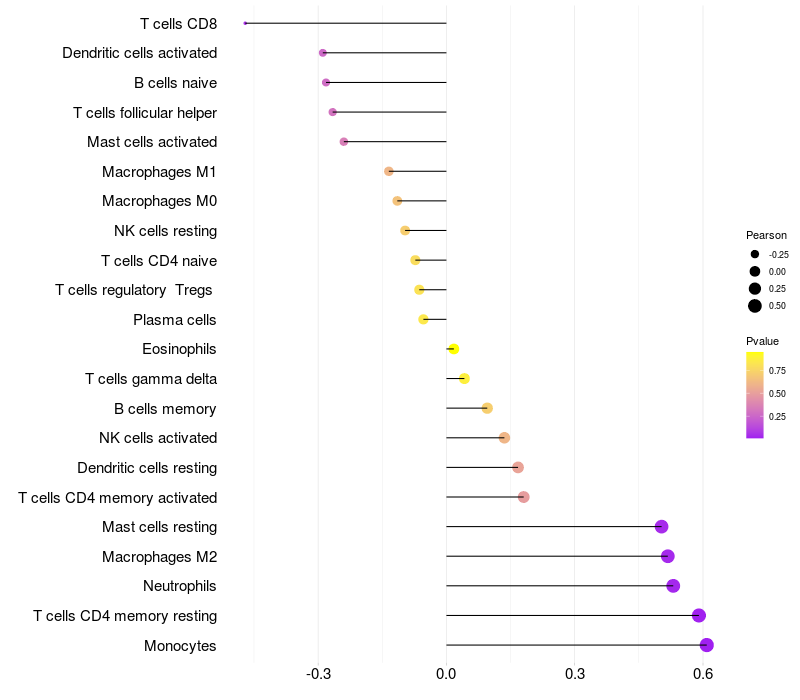Relationship between gene expression and immune infiltrating cell level
