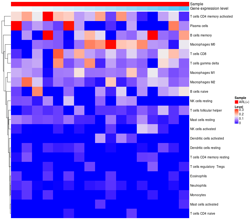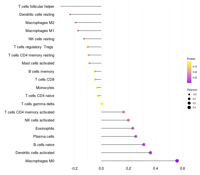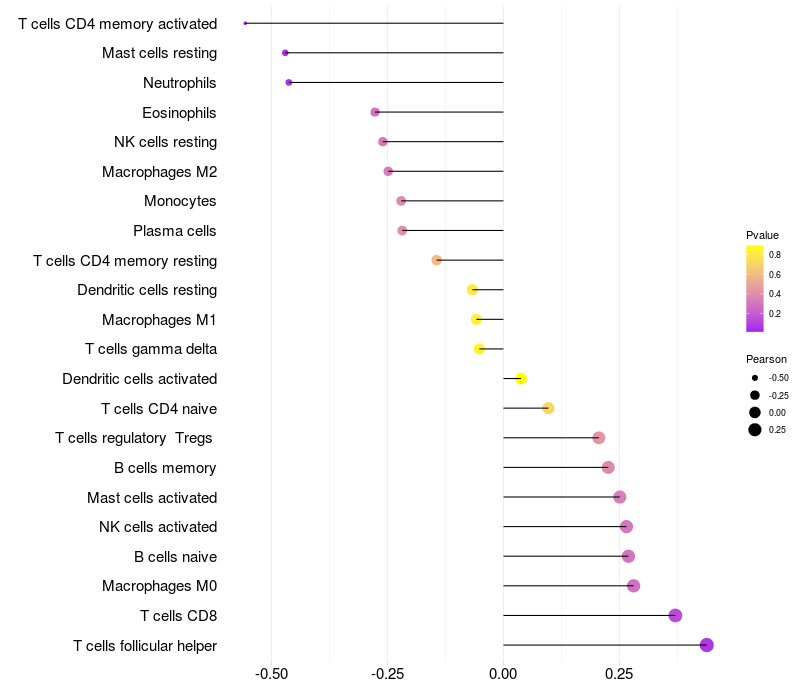 Relationship between gene expression and immune infiltrating cell level