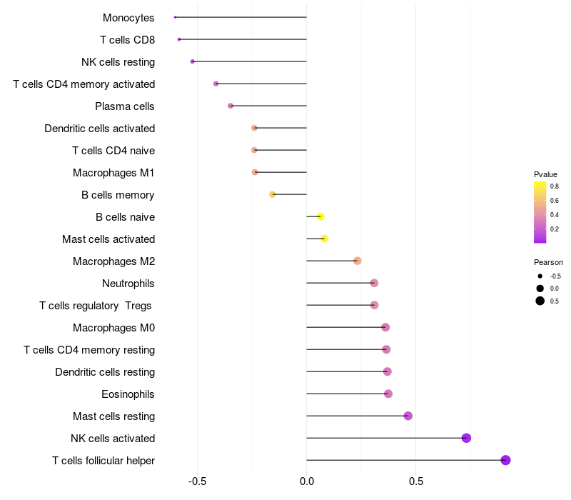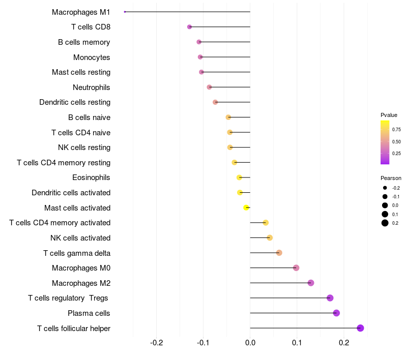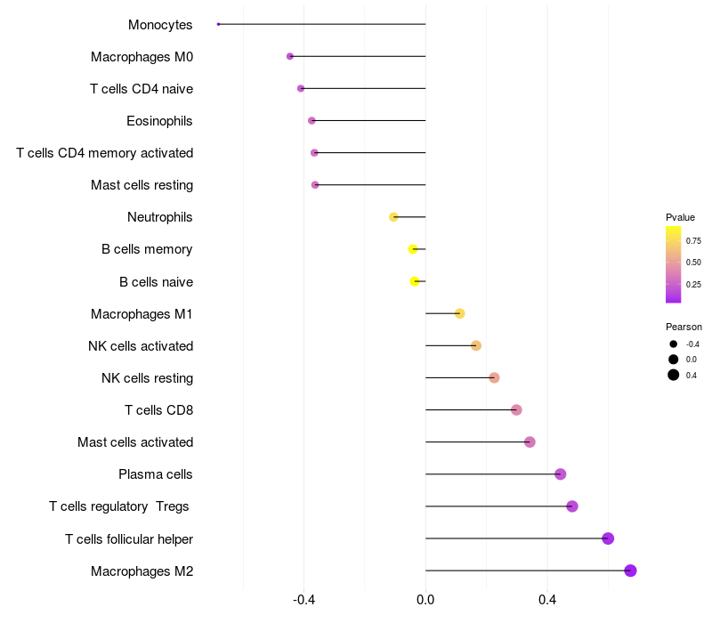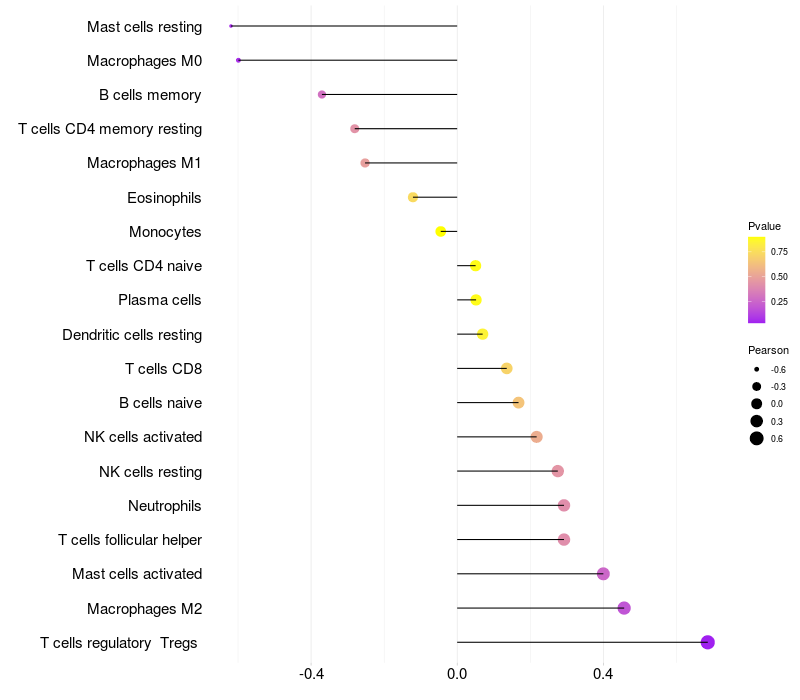 Lollipop of ZNF114 expression and immune infiltrating cell level correlation result in HBV+ Liver cirrhosis samples