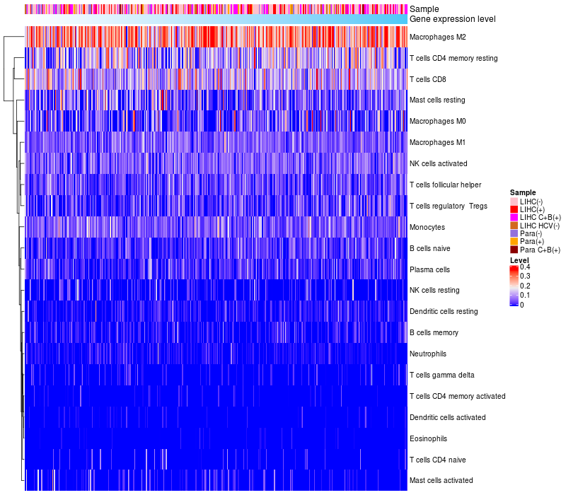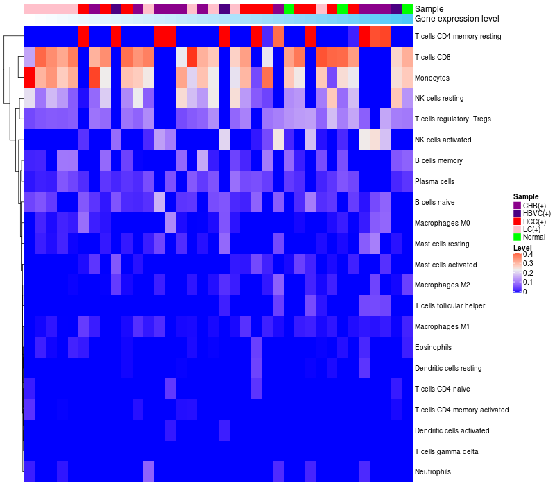 Liver hepatocellular carcinoma HCV (HBV+)(86), Liver hepatocellular carcinoma HCV (HBV-)(19), Liver hepatocellular carcinoma (HBV+)(209), Liver hepatocellular carcinoma (HBV+)(60), Paracancerous HCV (HBV+)(4), Paracancerous (HBV-)(28), Paracancerous (HBV+)(18) |