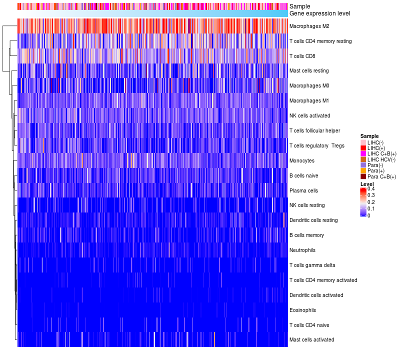 Relationship between gene expression and immune infiltrating cell level