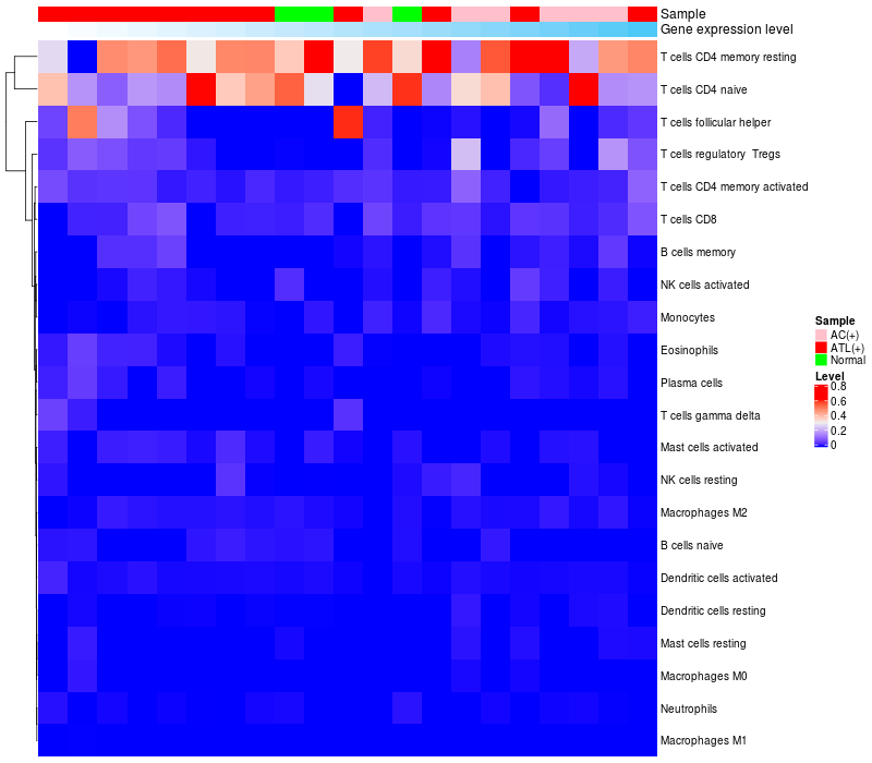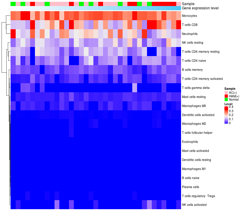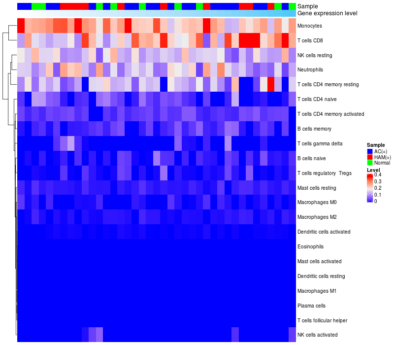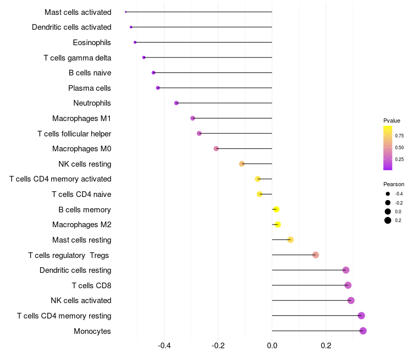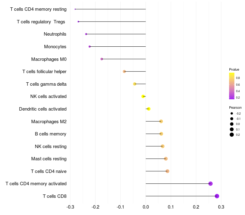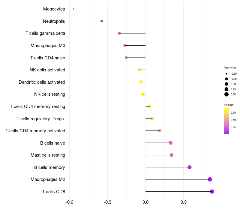 Lollipop of ZNF133 expression and immune infiltrating cell level correlation result in HTLV1+ samples