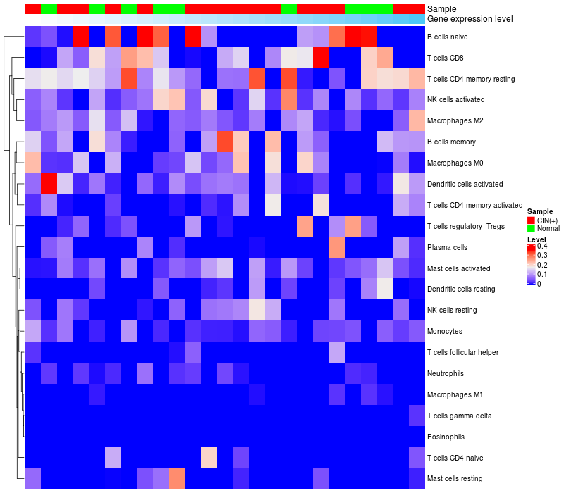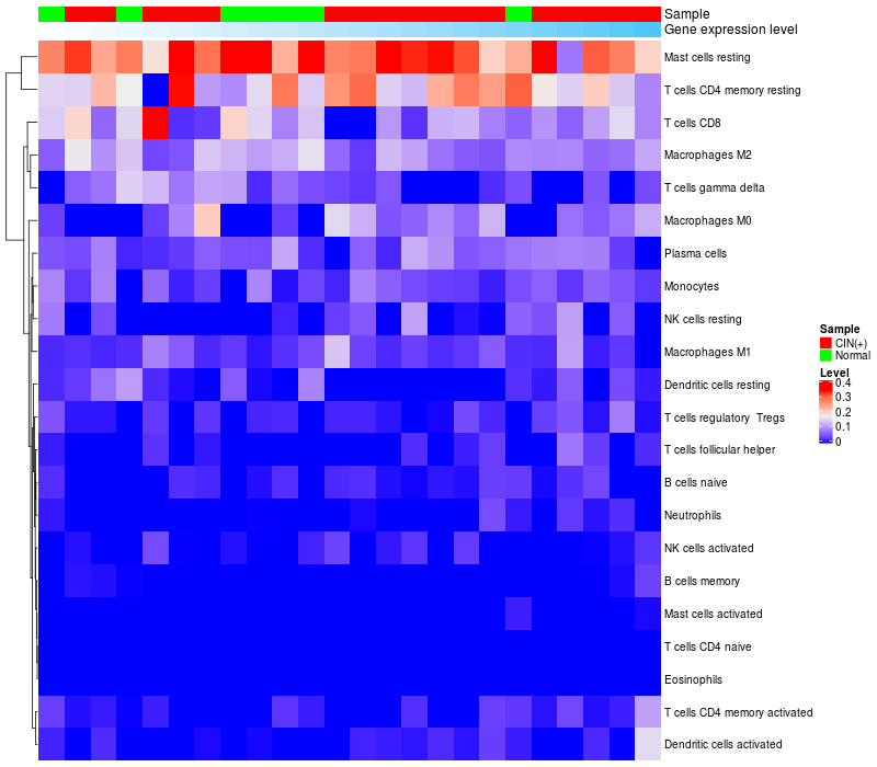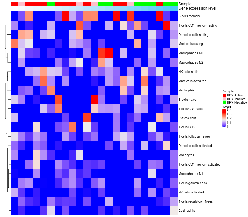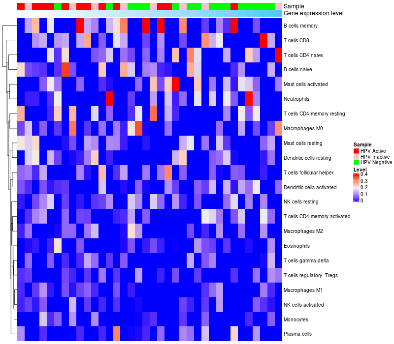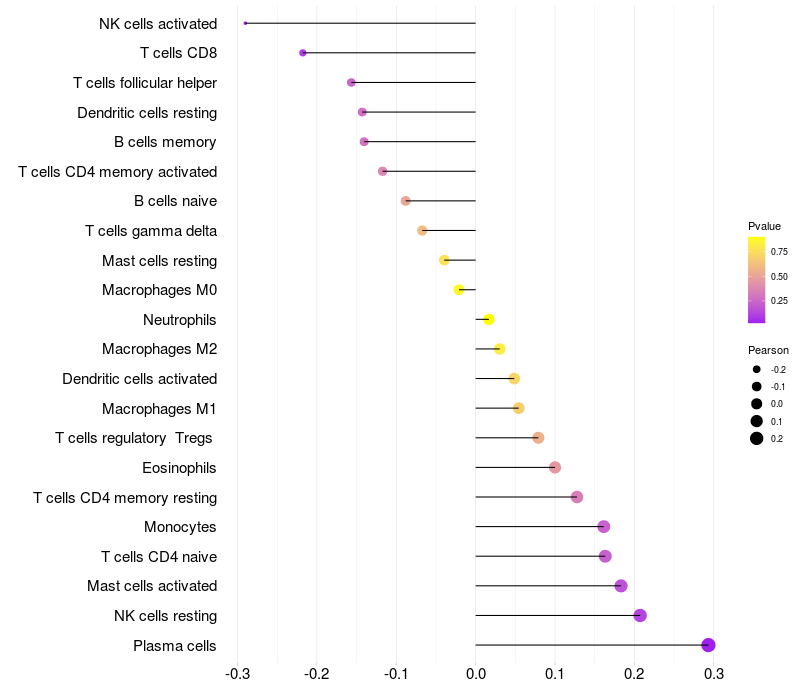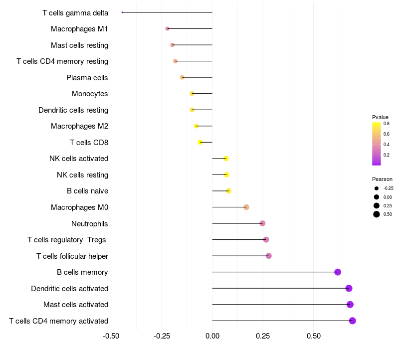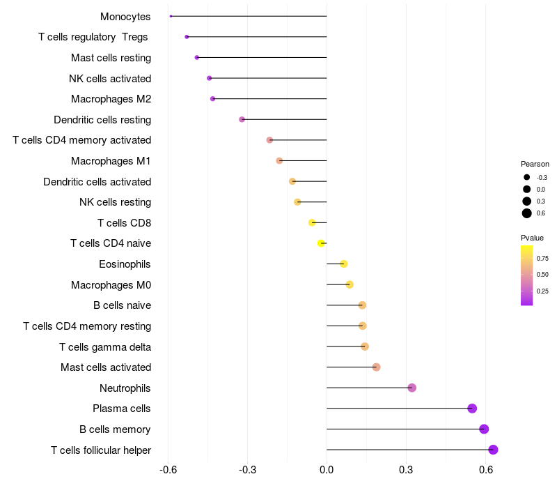 Lollipop of ZNF165 expression and immune infiltrating cell level correlation result in HPV+ samples