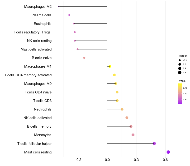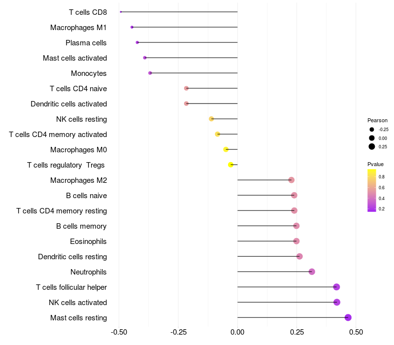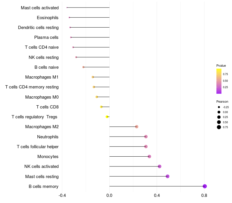 Lollipop of ZNF184 expression and immune infiltrating cell level correlation result in HBV+ Chronic HBV (CHB) infection samples