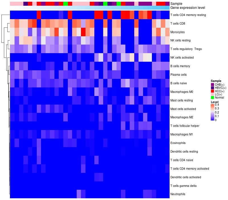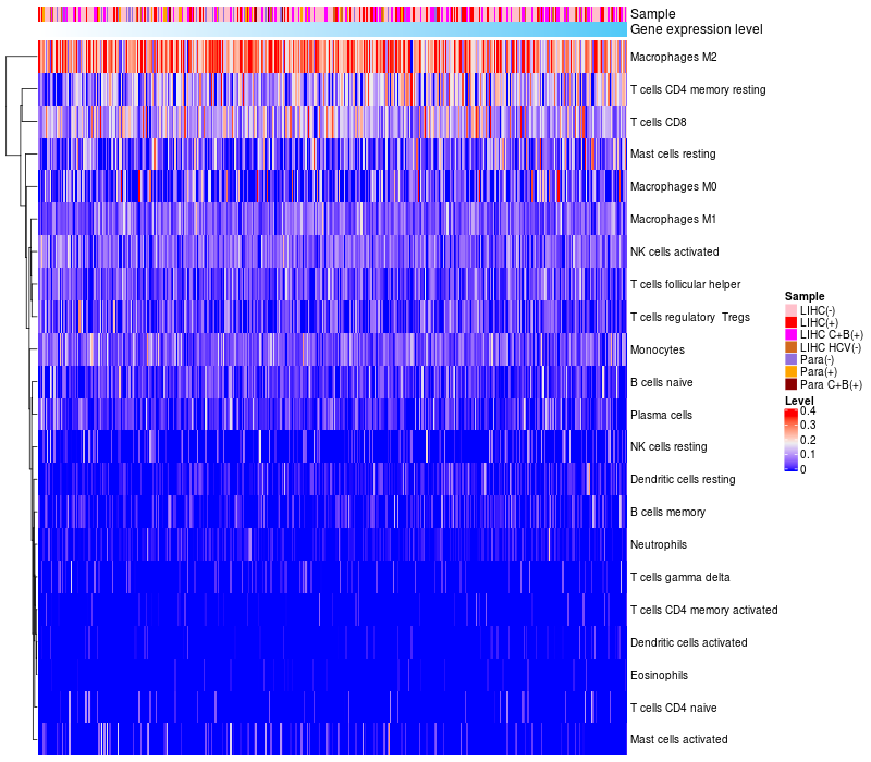 Liver hepatocellular carcinoma HCV (HBV+)(86), Liver hepatocellular carcinoma HCV (HBV-)(19), Liver hepatocellular carcinoma (HBV+)(209), Liver hepatocellular carcinoma (HBV+)(60), Paracancerous HCV (HBV+)(4), Paracancerous (HBV-)(28), Paracancerous (HBV+)(18) |