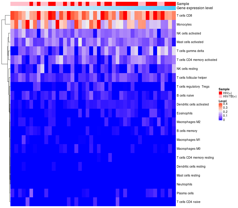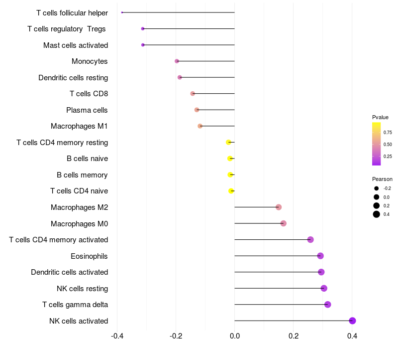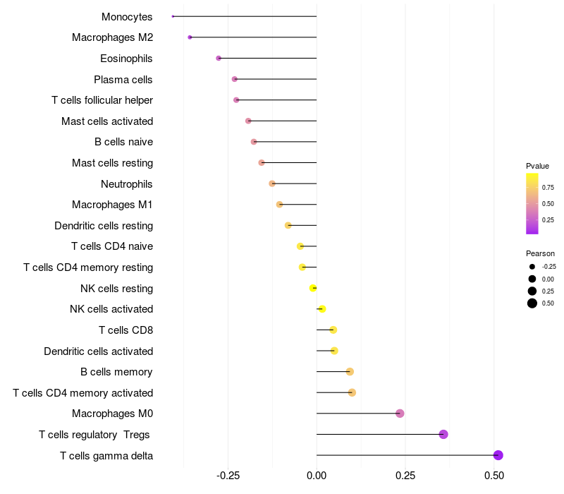 Relationship between gene expression and immune infiltrating cell level