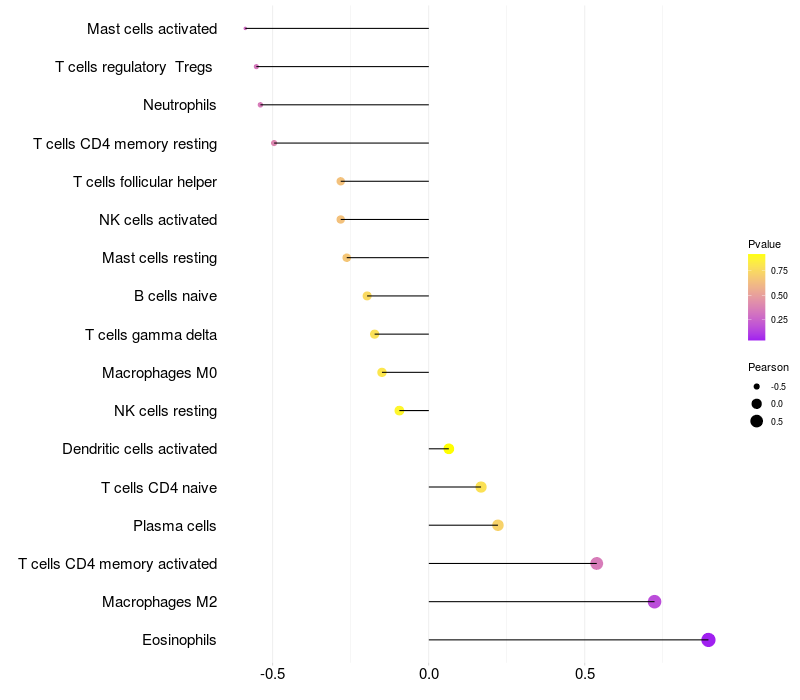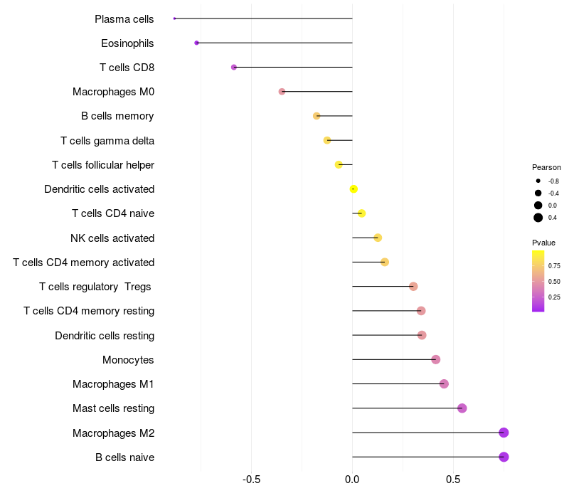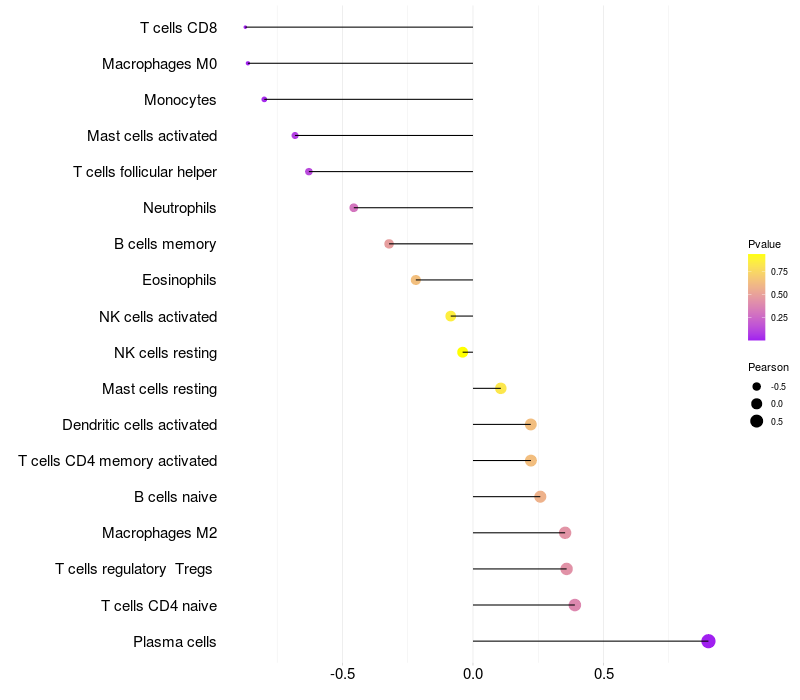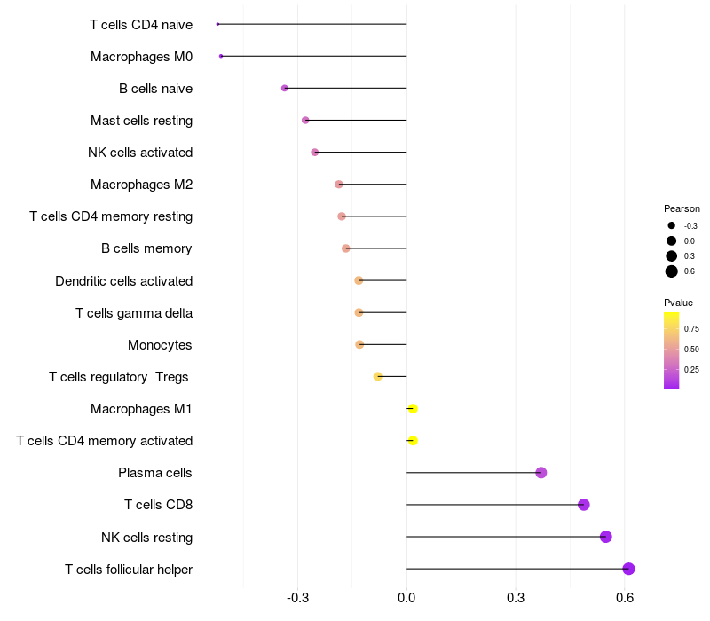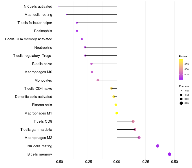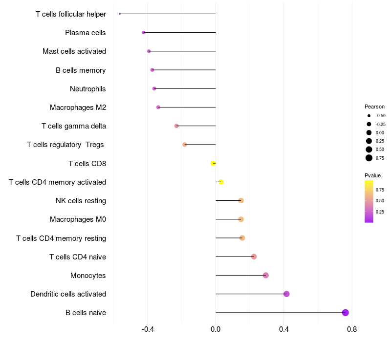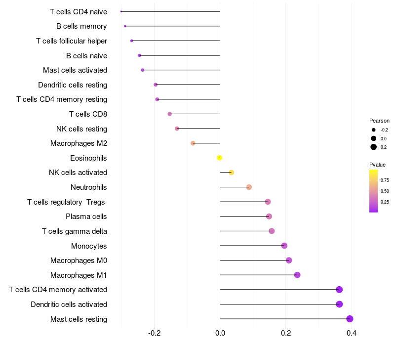Lollipop of ZNF207 expression and immune infiltrating cell level correlation result in EBV+ samples