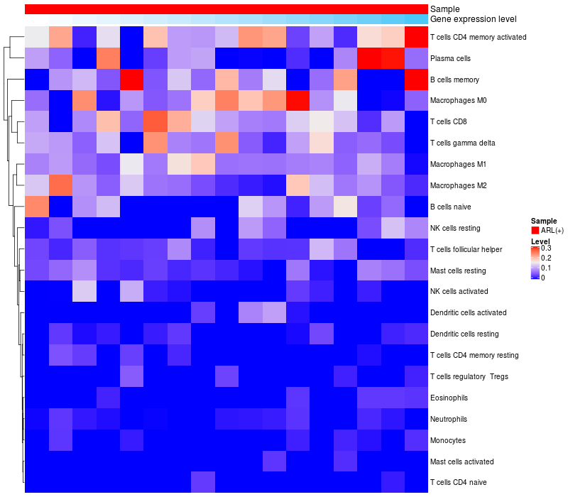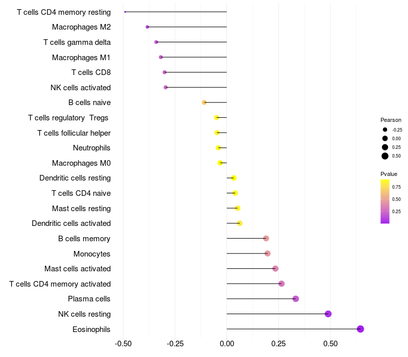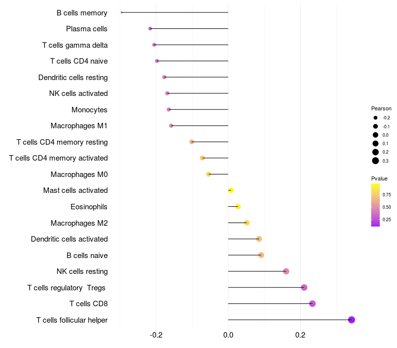 Relationship between gene expression and immune infiltrating cell level
