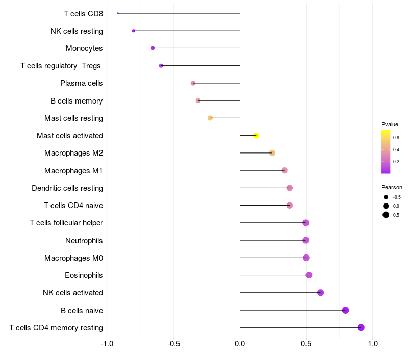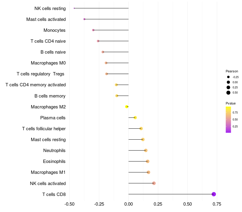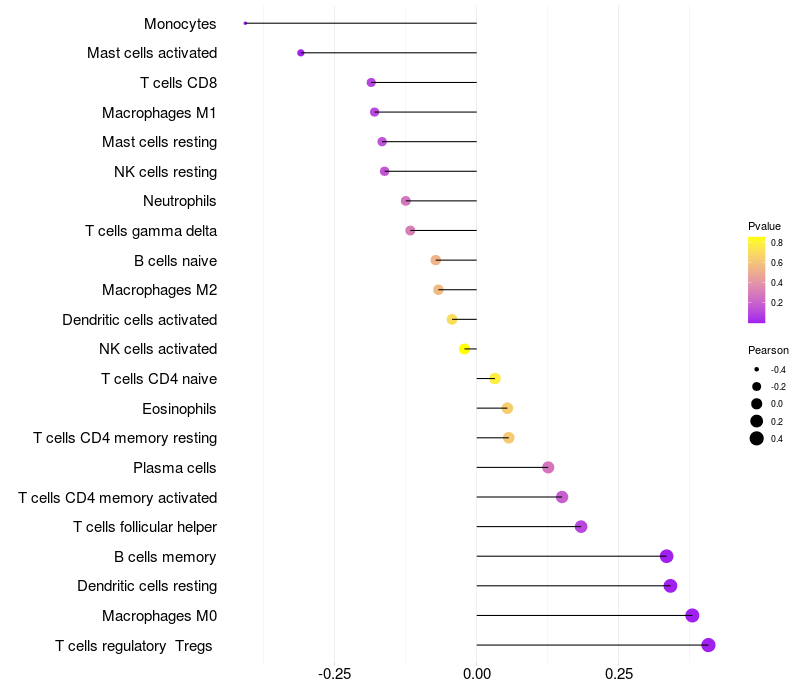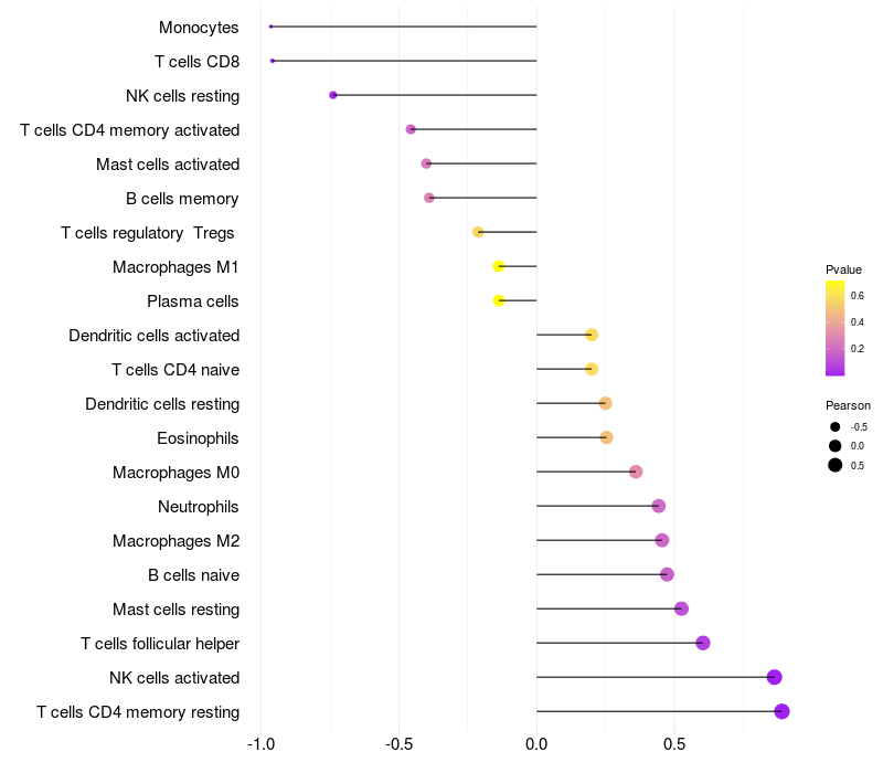 Lollipop of ZNF251 expression and immune infiltrating cell level correlation result in HBV+ Liver cirrhosis samples