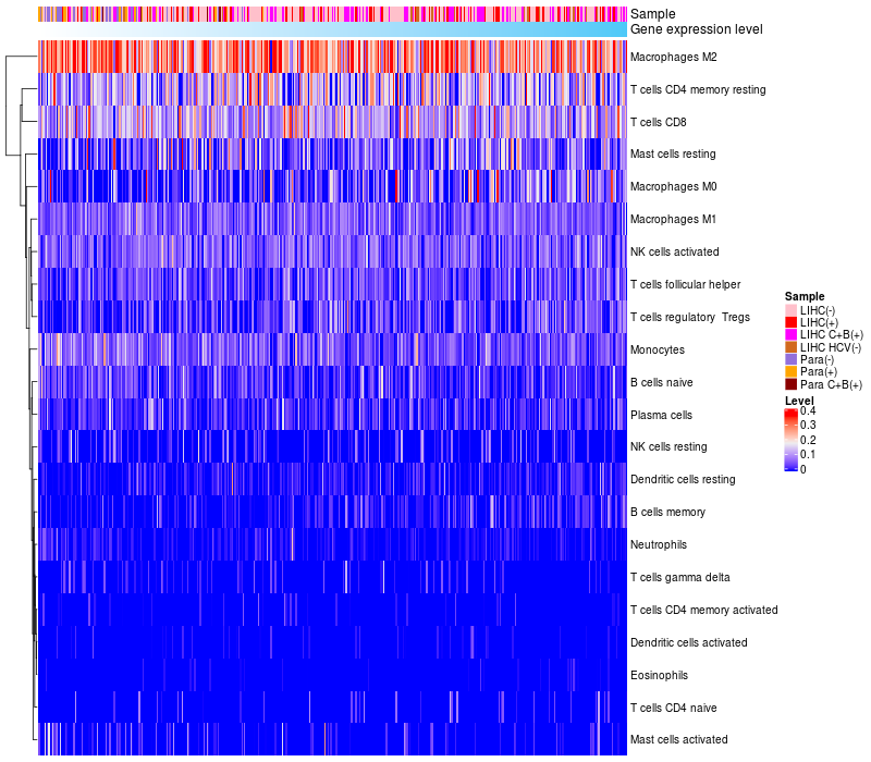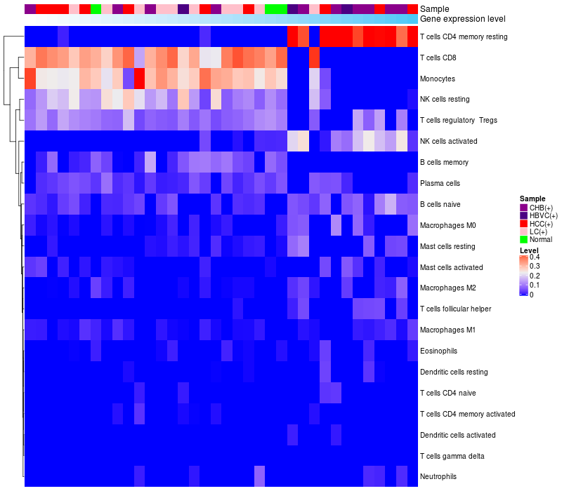 Relationship between gene expression and immune infiltrating cell level