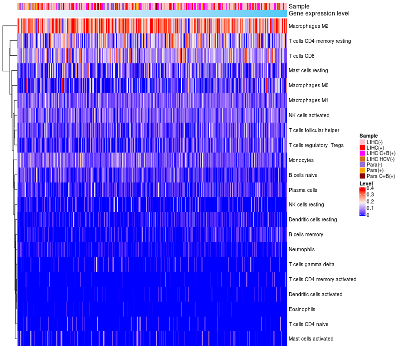 Liver hepatocellular carcinoma HCV (HBV+)(86), Liver hepatocellular carcinoma HCV (HBV-)(19), Liver hepatocellular carcinoma (HBV+)(209), Liver hepatocellular carcinoma (HBV+)(60), Paracancerous HCV (HBV+)(4), Paracancerous (HBV-)(28), Paracancerous (HBV+)(18) |
