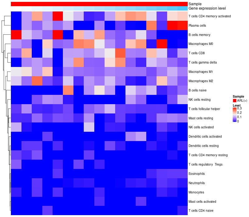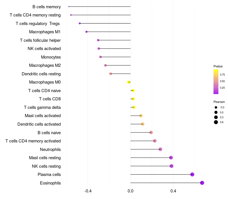 Relationship between gene expression and immune infiltrating cell level