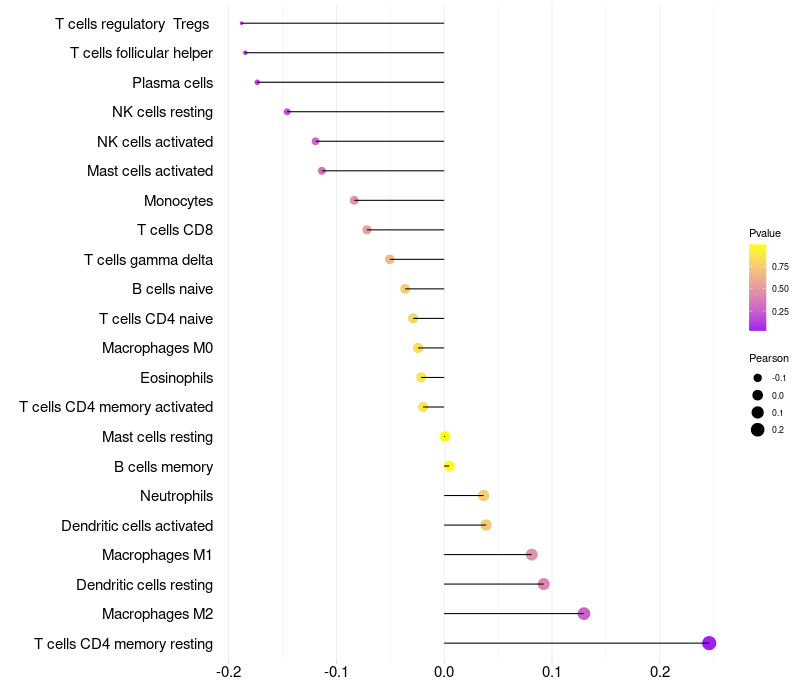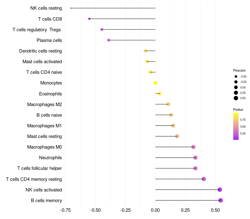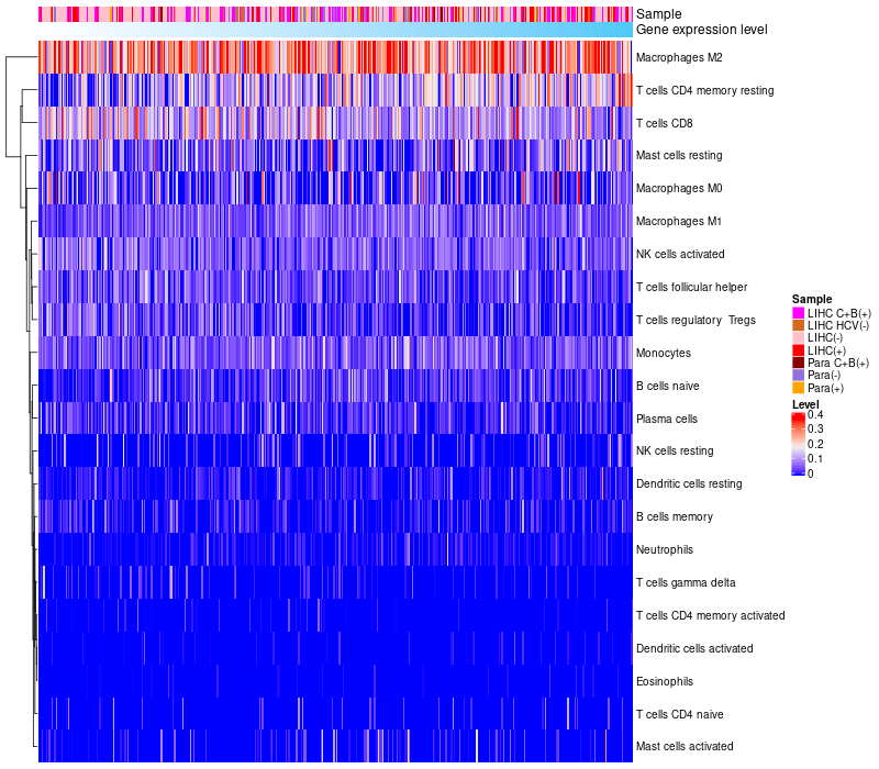 Relationship between gene expression and immune infiltrating cell level