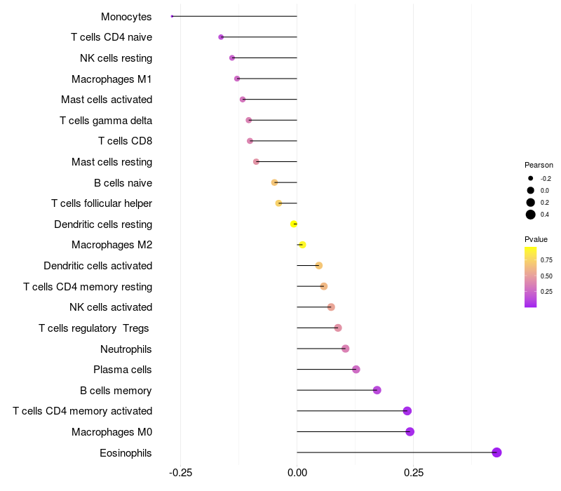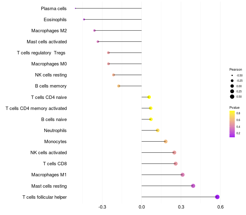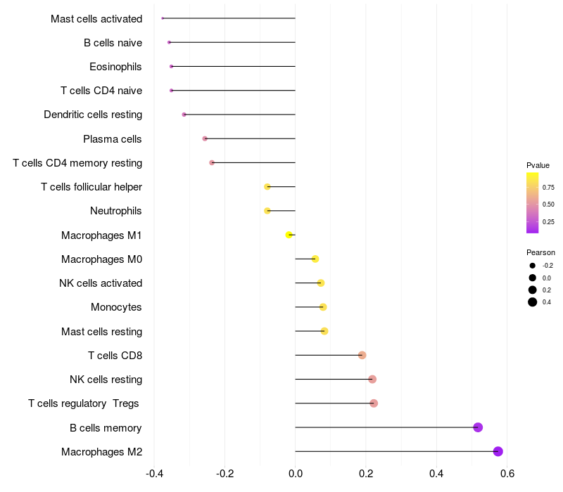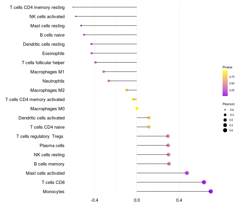 Lollipop of ZNF292 expression and immune infiltrating cell level correlation result in HBV+ Liver cirrhosis samples