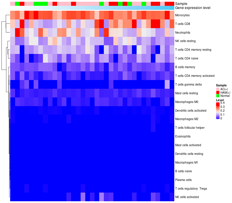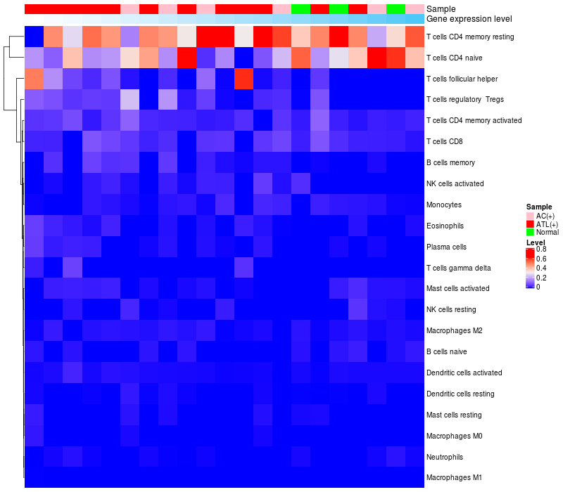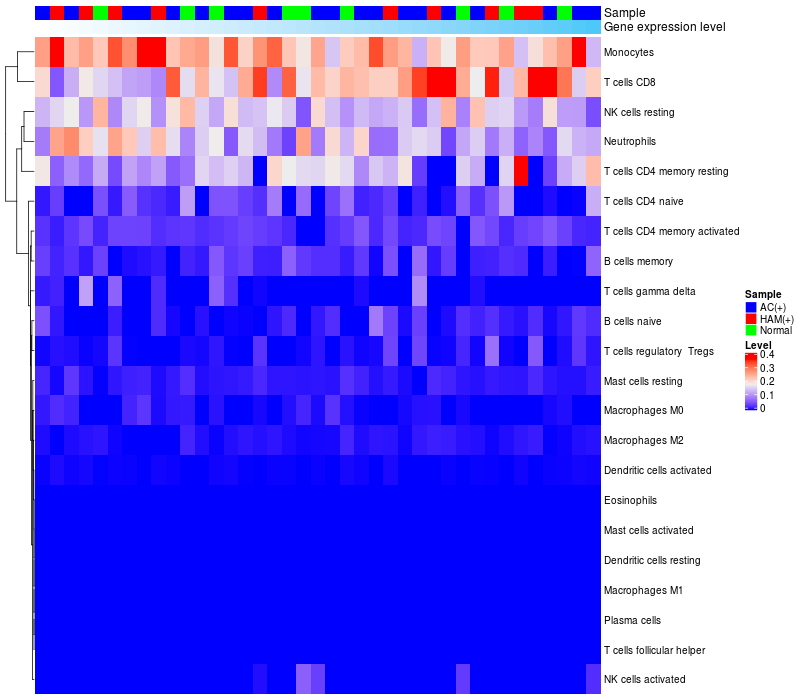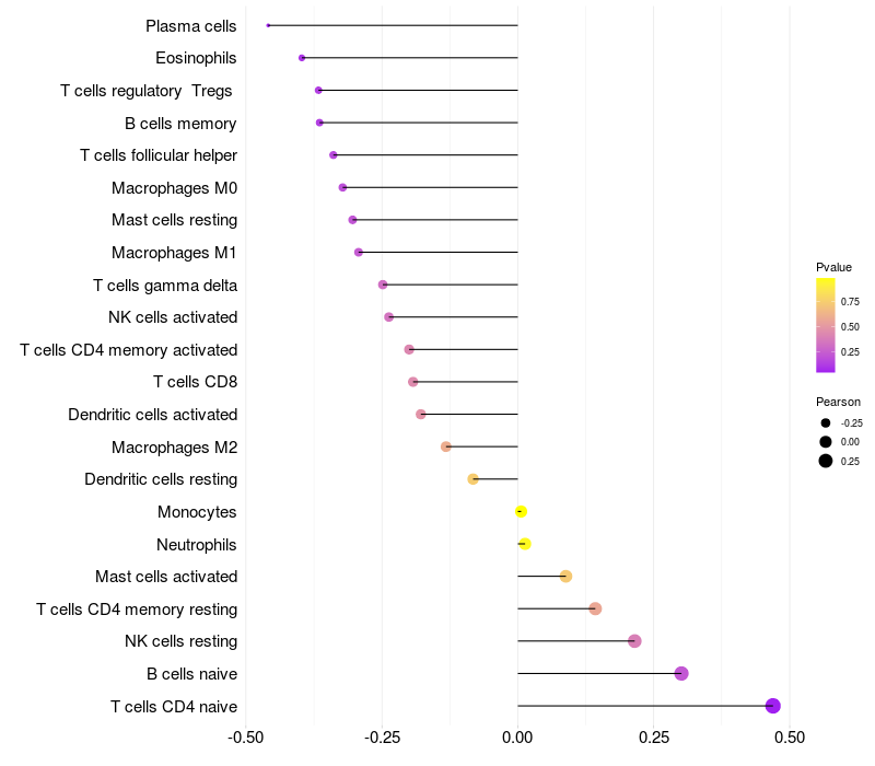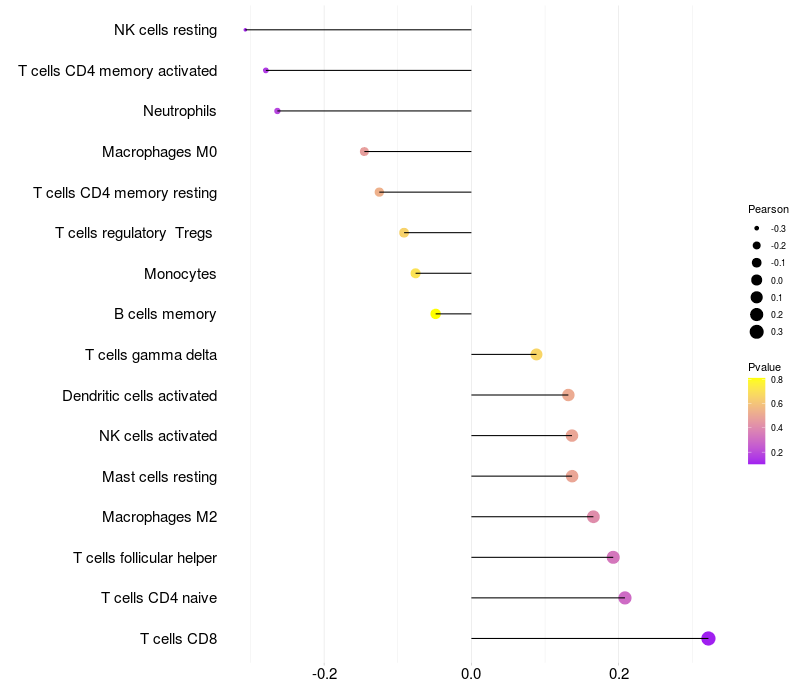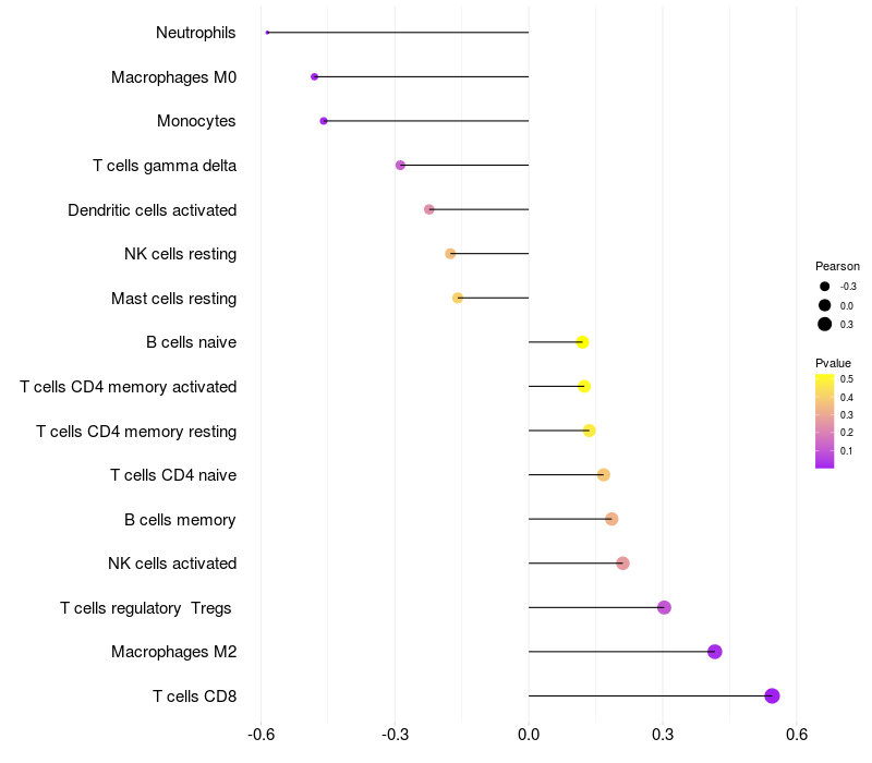 Lollipop of ZNF302 expression and immune infiltrating cell level correlation result in HTLV1+ samples