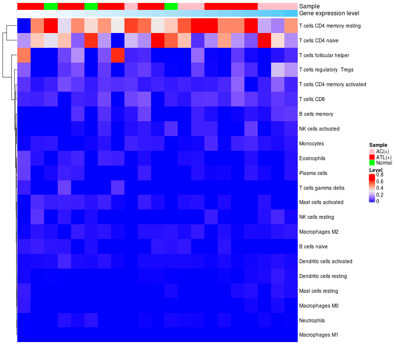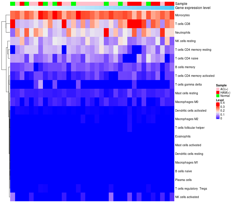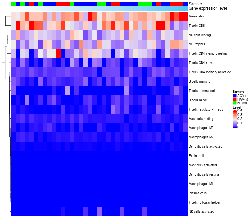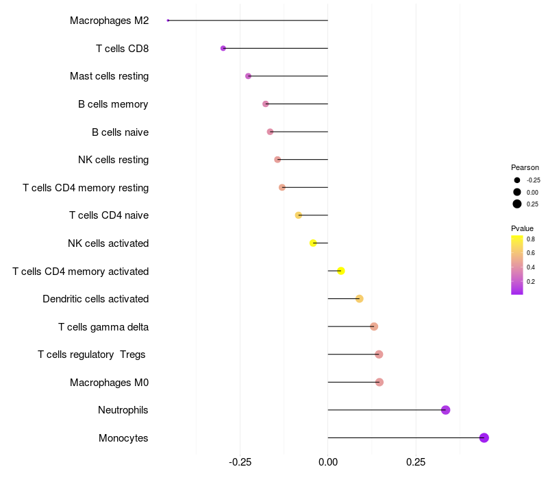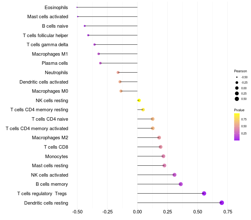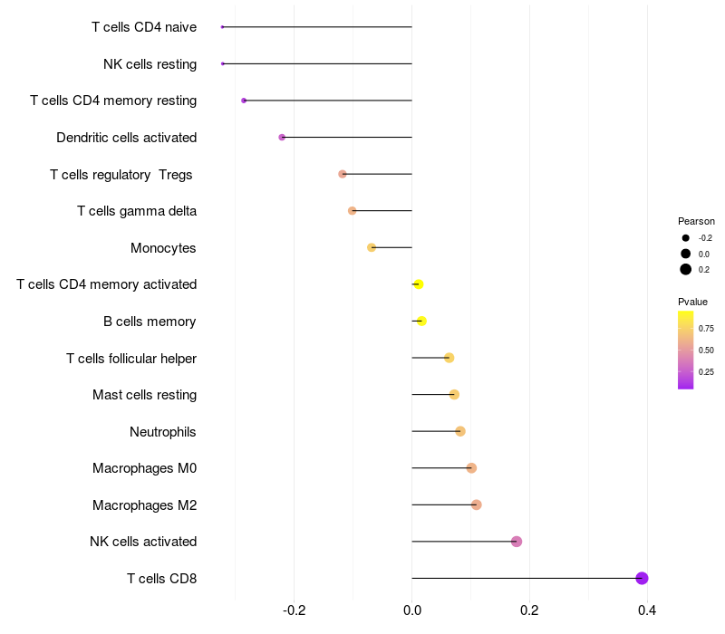Relationship between gene expression and immune infiltrating cell level
