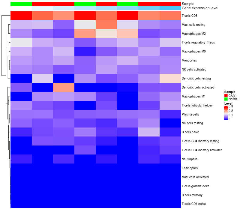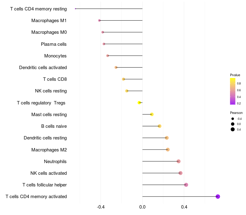 Relationship between gene expression and immune infiltrating cell level