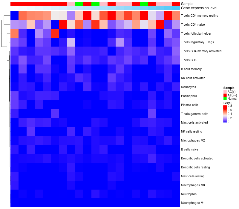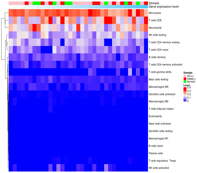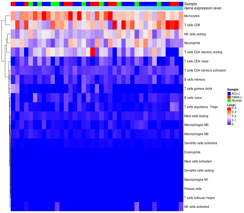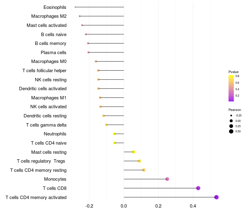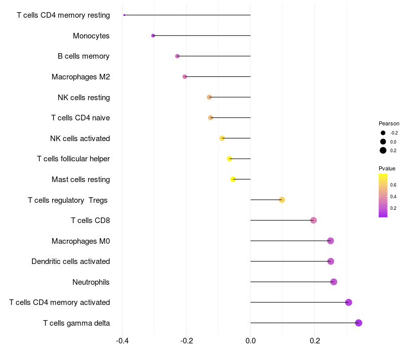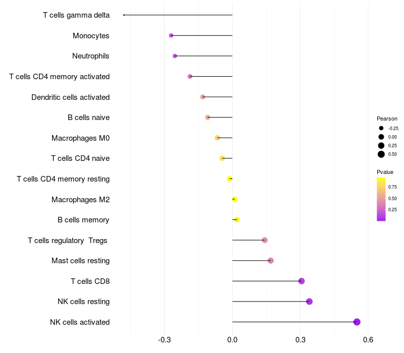 Lollipop of ZNF425 expression and immune infiltrating cell level correlation result in HTLV1+ samples
