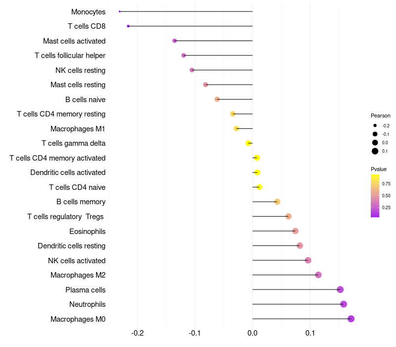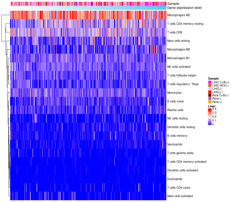 Relationship between gene expression and immune infiltrating cell level
