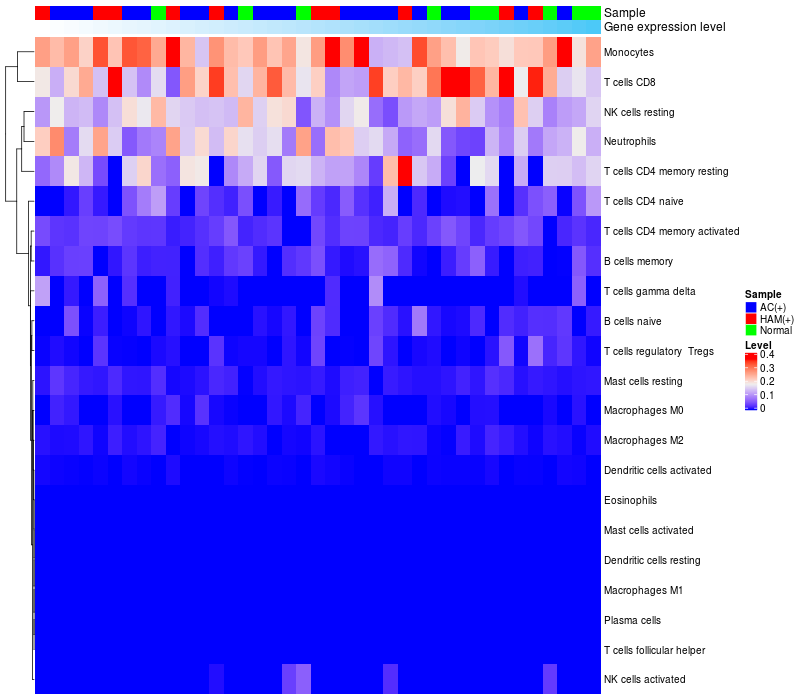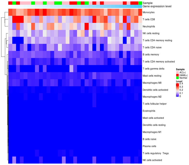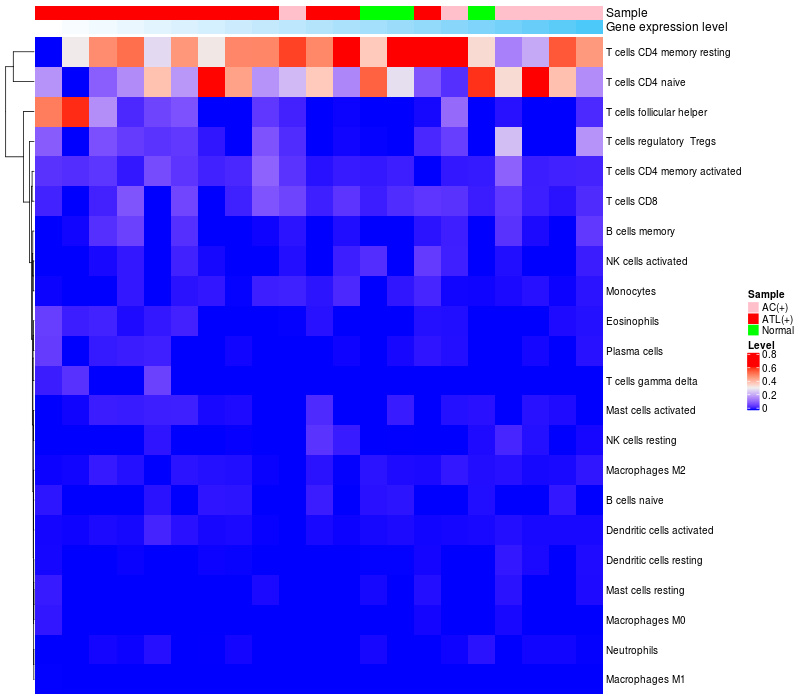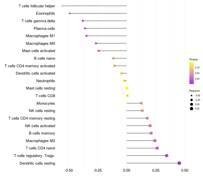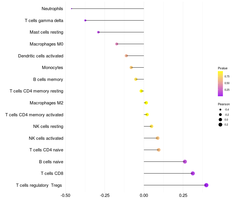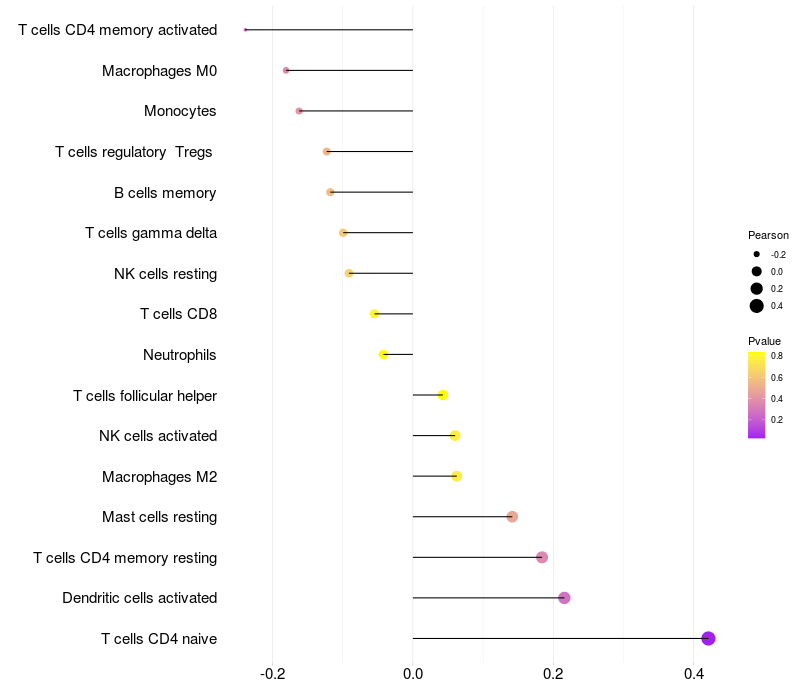 Lollipop of ZNF439 expression and immune infiltrating cell level correlation result in HTLV1+ samples
