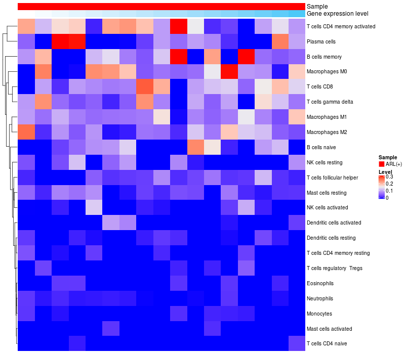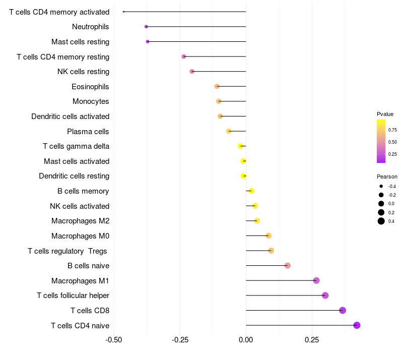 Relationship between gene expression and immune infiltrating cell level