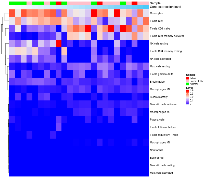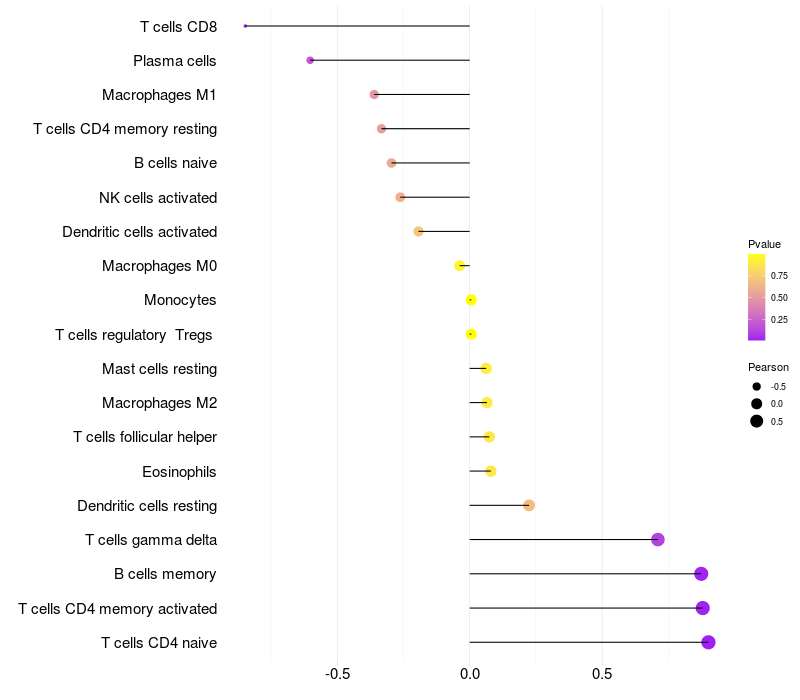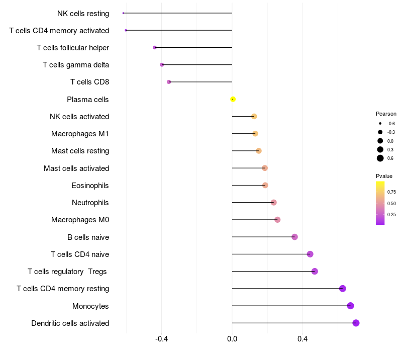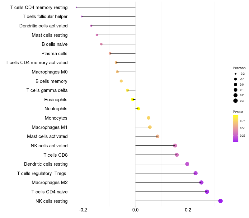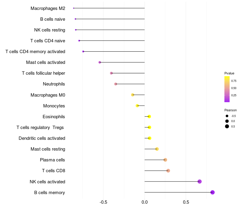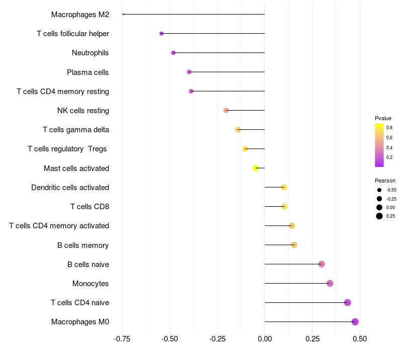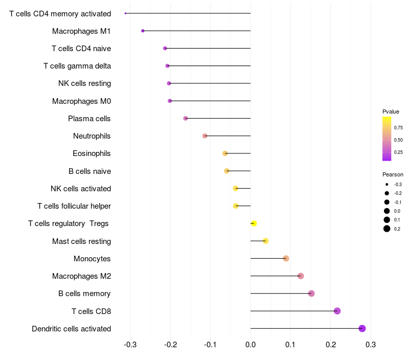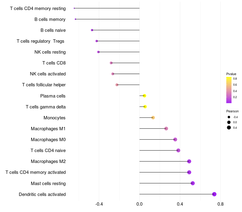 Lollipop of ZNF460 expression and immune infiltrating cell level correlation result in EBV+ samples