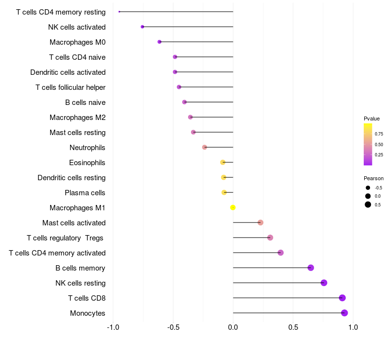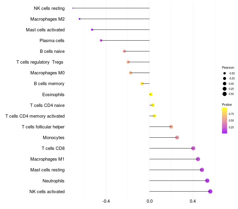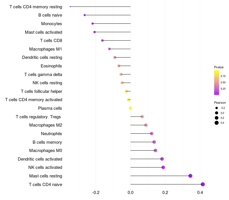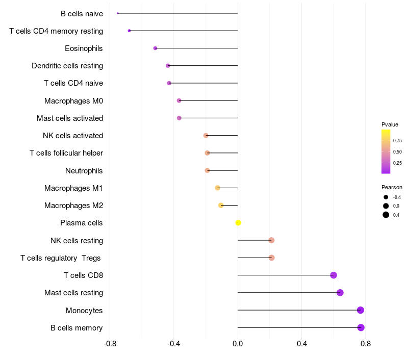 Lollipop of ZNF467 expression and immune infiltrating cell level correlation result in HBV+ Liver cirrhosis samples